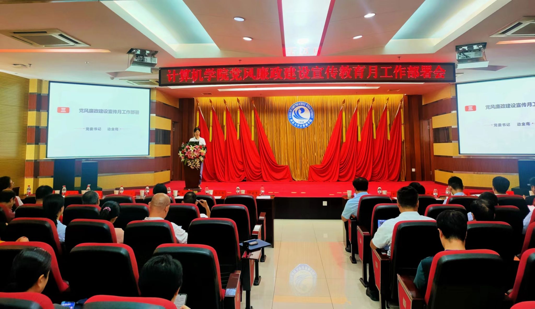 党风廉政建设宣传教育月活动,是全省统一部署的一项廉政教育活动。为认真落实学校党风廉政宣传教育月的工作部署,深入推进党风廉政建设,强化全面从严治党的政治自觉,提升党员干部拒腐防变、廉洁自律意识,2023年9月14日下午,计算机学院在八楼报告厅召开教职工大会布置党风廉政建设宣传教育月相关工作。