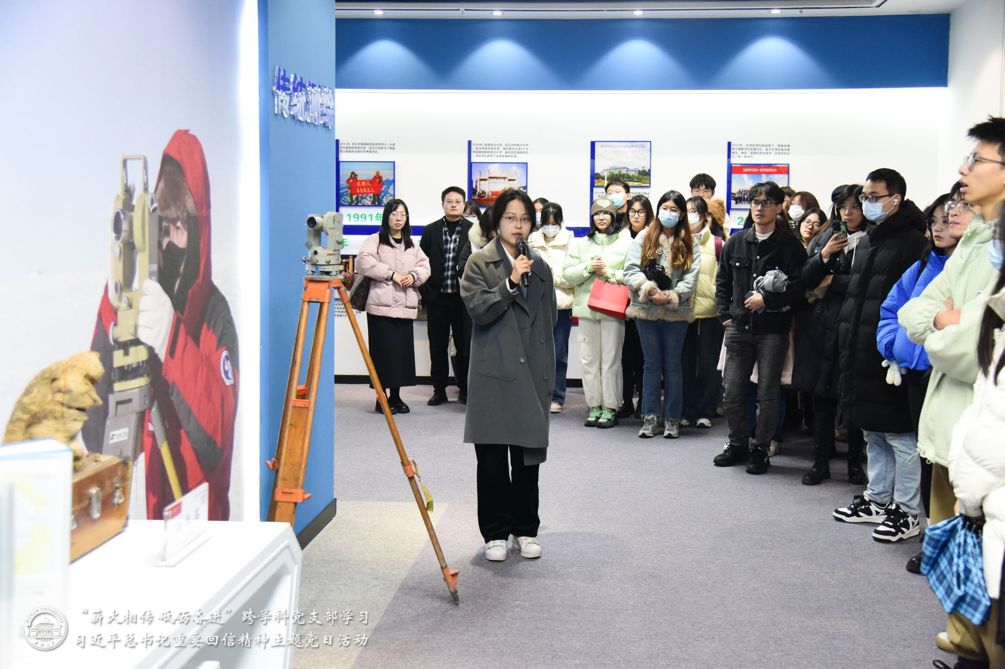 首先,支部成员在测绘遥感信息工程国家重点实验室研究生辅导员蔡璐阳老师的带领下参观了测绘遥感科学家精神基地。蔡璐阳详细介绍了实验室发展的历史沿革与测绘方法的更新进步,通过展示40年前的传统测绘仪器经纬仪、20年前引入的进口航空摄影测量系统以及如今熠熠生辉的“珞珈四星”,强调经过武汉大学一代又一代科研人的不懈奋斗,南北极科考团队以实际行动服务国家重大战略需求,坚守为党育人为国育才初心使命,担当高水平科技自立自强的时代责任,不断攀登新的科学高峰,为建设教育强国、科技强国、人才强国,全面推进中国式现代化作出武大贡献。