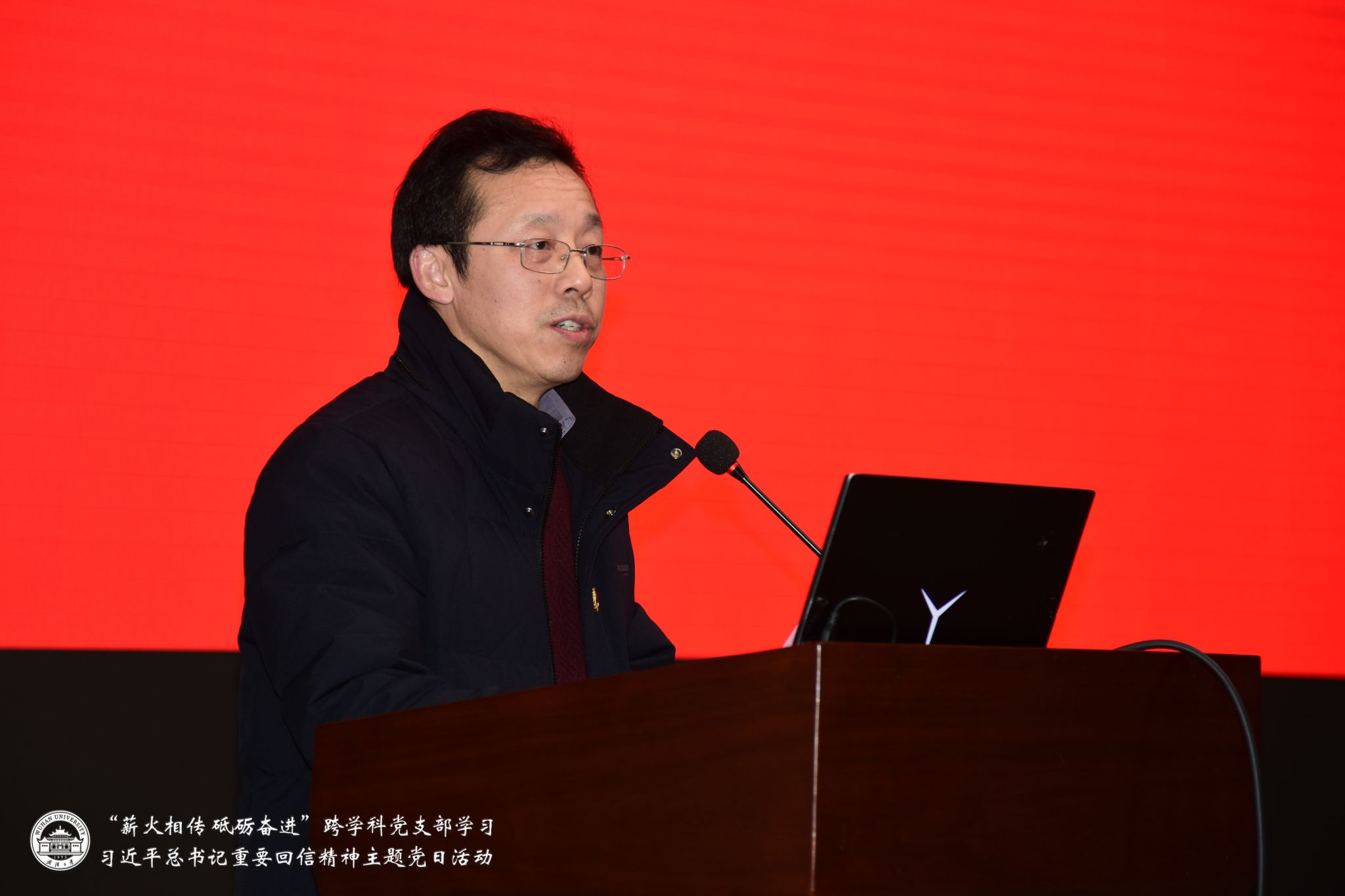 参观结束后,党员同志前往星湖综合实验大楼三楼报告厅举行“薪火相传 砥砺奋进”跨学科党支部学习习近平总书记重要回信精神座谈会。会议伊始,测绘遥感信息工程国家重点实验室党委书记秦后国介绍了回信的相关背景,并阐释了回信的深刻内涵和重大意义。秦后国指出,习近平总书记的重要回信包含着殷殷嘱托与深切关怀,从1984年鄂栋臣教授响应祖国“把五星红旗插上南极大陆”的号召,毅然写下“我的生死,由我负责”首征南极,到1991年学校创建中国南极研究中心,40年来,武大极地科考人接续奋斗,担当作为,以实际行动服务国家重大战略需求,亲历了中国极地事业从无到有,从弱到强的发展历程,攻克极地测绘遥感一系列关键核心技术,在极地考察和科研领域创造了多项第一,培养了一大批优秀学子。众多青年学子在南极科考的过程中坚定了学术志趣和人生选择。秦书记勉励与会师生以重要回信精神为指引,坚持“四个面向”,持续推进科学研究,胸怀大志,砥砺奋进。