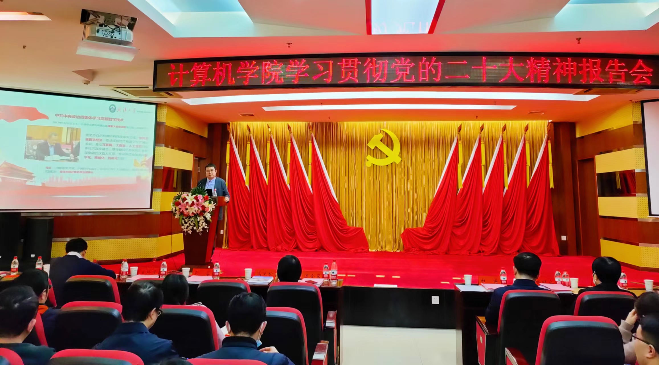 2023年3月31日,武汉大学青年讲师团青年教师分团成员、计算机学院优秀青年教师张乐飞教授以《AI之光点亮数字未来》为题,面向计算机学院师生深入宣传党的二十大精神。全体教职工和30个师生党支部的全体委员参加了报告会。院党委副书记高卫松主持会议。