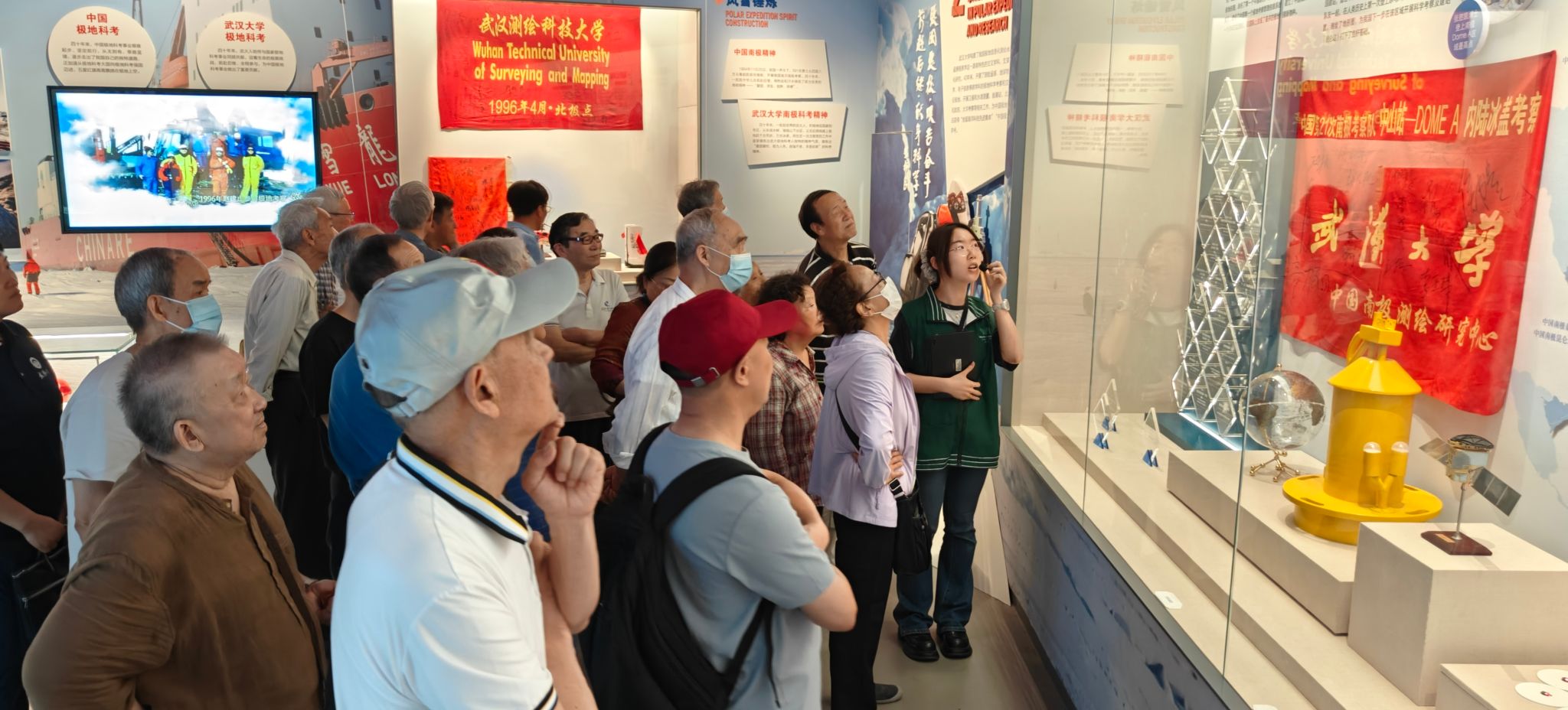 5月22日,计算机学院组织离退休教工到万林博物馆参观“不负嘱托写壮歌——武汉大学南北极科学考察主题展”。主题展分为国之大者、极地之光、中国主张、冰雪探秘四个篇章,共展出196件珍贵科考实物、独特极地标本,集中展现了武汉大学在极地科考的非凡历程和创新成果,营造了精致绚丽、内涵丰富的极地体验空间。老师们跟随讲解员步入展厅,学习习近平总书记给武汉大学参加中国南北极科学考察队的师生代表回信精神,深受鼓舞和倍感作为武大人的骄傲和使命意识;参观科学家们在基地使用过的仪器设备和生活用品,一件件实物,一面面旗帜,无不彰显科考队员克服恶劣气候、勇攀科学高峰的责任担当。