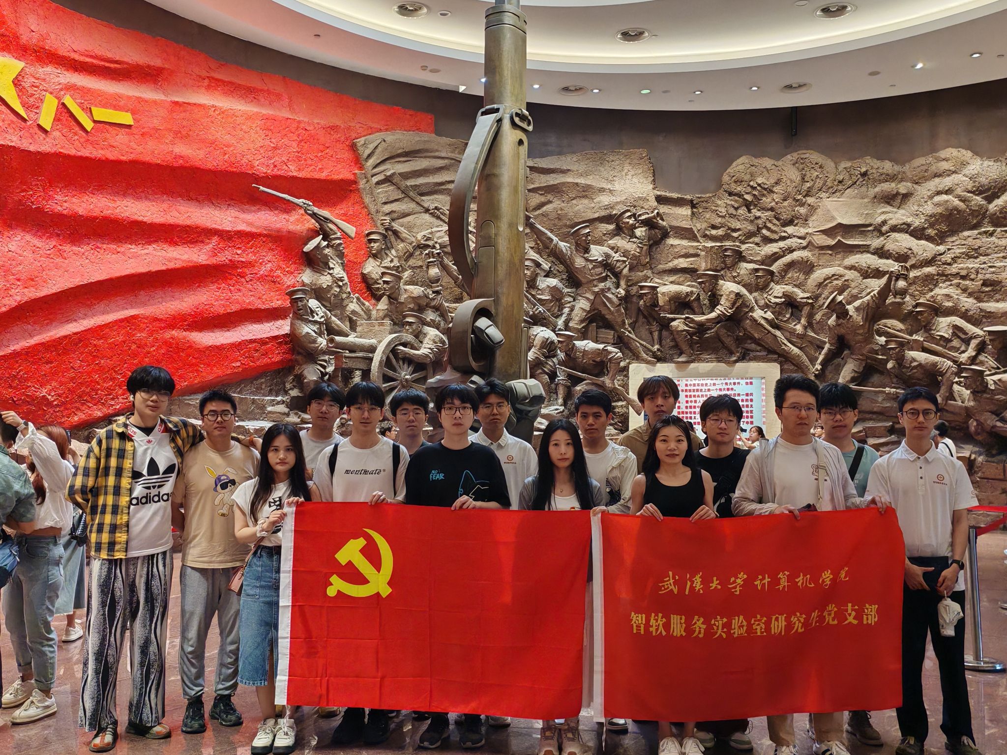 南昌,是军旗升起的地方,是人民军队的诞生地,南昌广袤土地上红色资源星罗棋布,其所孕育的革命精神是中国共产党人红色基因和精神谱系的重要组成部分。为深入学习贯彻习近平新时代中国特色社会主义思想、党的二十大精神和习近平总书记K体育·(sports)官方网站“大思政课”的重要指示批示,计算机学院智能化软件与服务工程实验室研究生党支部组织支部党员骨干和部分团员、群众,与武汉计算机软件工程学会党支部及学院部分本科生党员于5月31日至6月2日共赴南昌开展了“红色土地孕育实景课堂,红色纽带聚力大思政建设”红色研学。在实景课堂上,师生联学,本硕博党员共上一节党课,共同品读传统文化,深入党纪学习教育,缅怀革命先烈,弘扬革命精神,传承红色基因,赓续红色血脉。