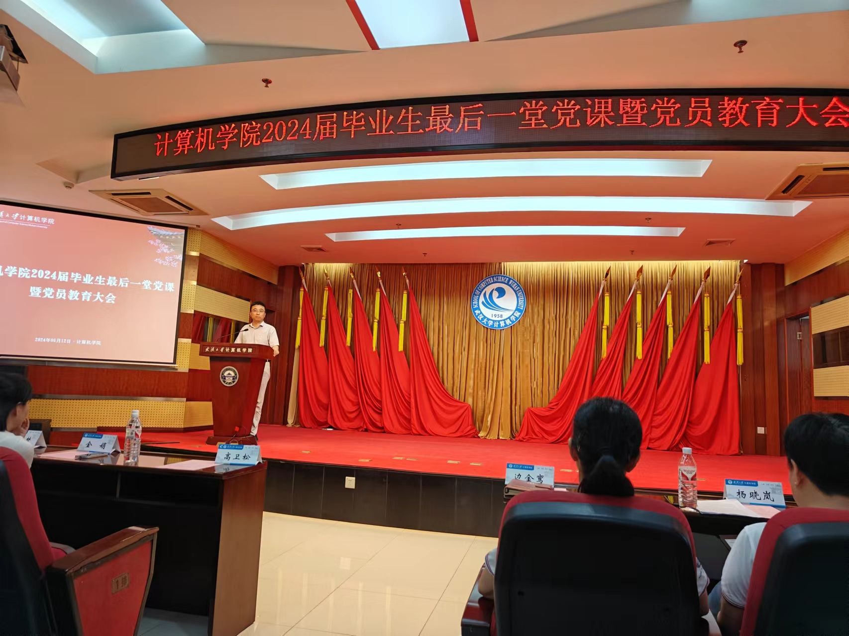 为深入开展党纪学习教育,贯彻落实习近平总书记给武汉大学参加中国南北极科学考察队师生代表的重要回信精神,激励毕业生党员和新党员坚定理想信念,增强党性觉悟,加强党性修养,厚植爱国情怀,计算机学院于6月12日下午在八楼报告厅隆重举行2024届毕业生最后一堂党课暨党员教育大会。