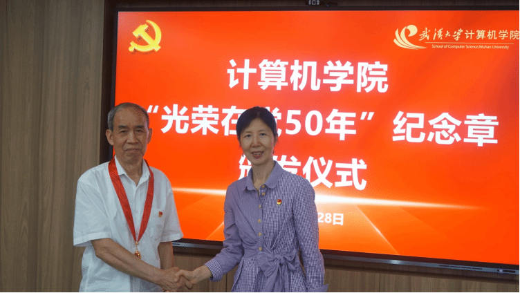 计算机学院举行“光荣在党50年”纪念章颁发仪式暨退休教工党支部党纪学习教育交流座谈会