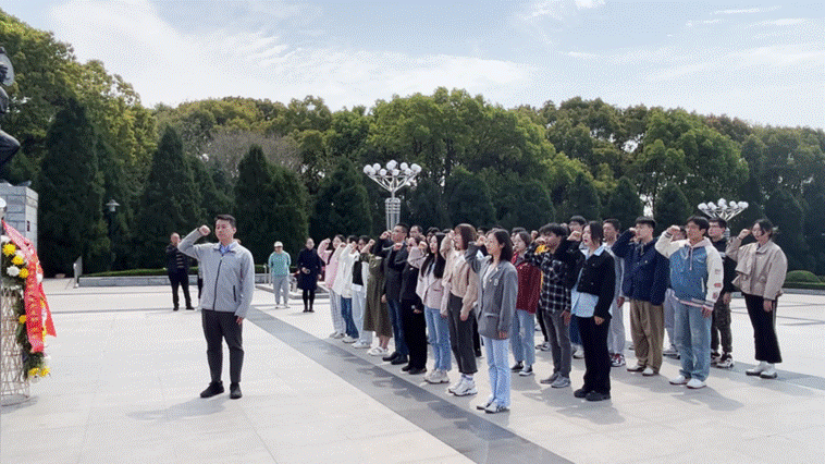 敬献花篮后,全体党员进行了一次庄严而隆重的重温入党誓词仪式。在这片红色沃土上,大家深刻感受到了革命先烈们为了民族独立和人民幸福所作出的巨大贡献,也让大家更加坚定了作为党员所应具备的坚定信仰和崇高理想。