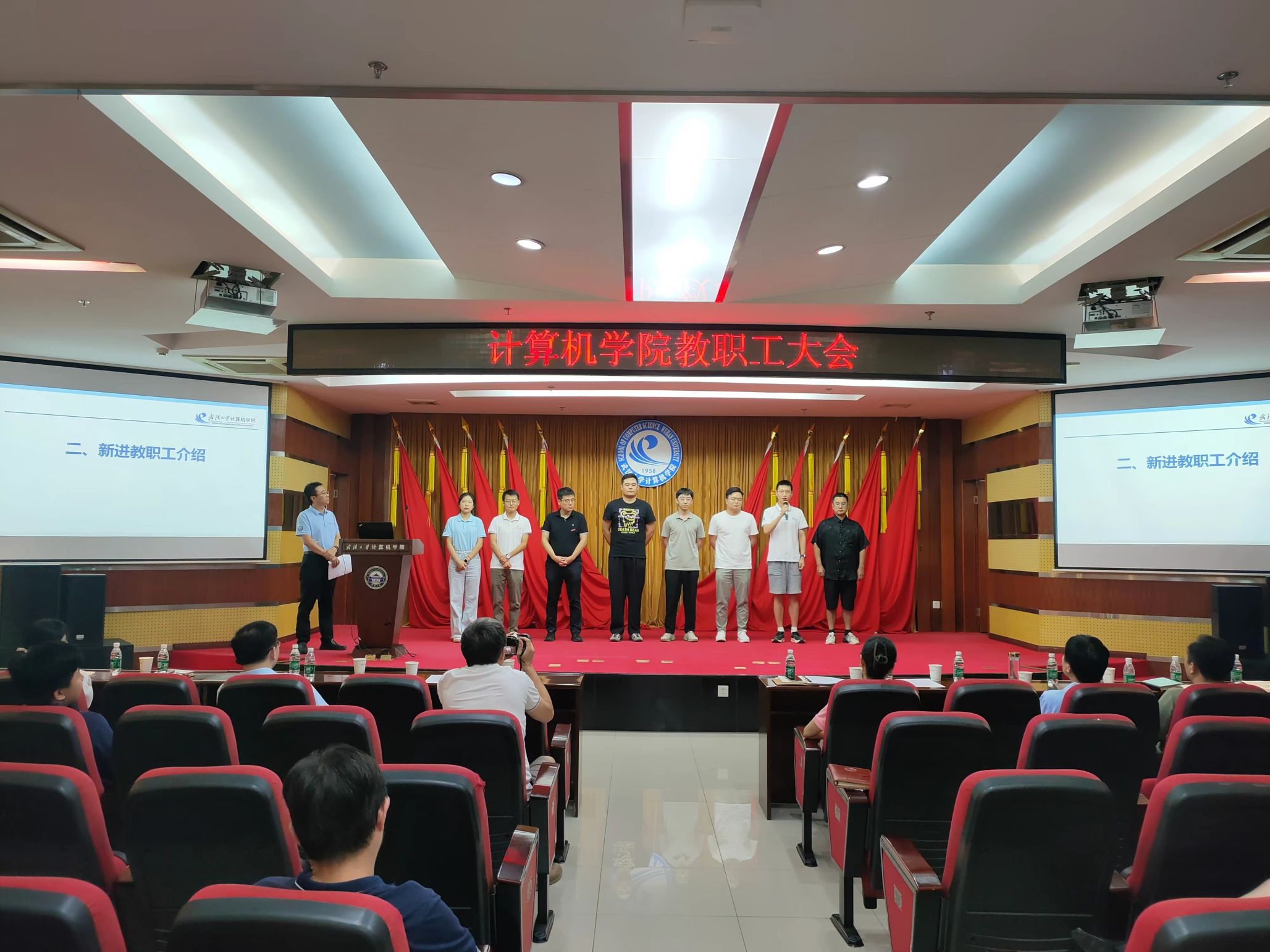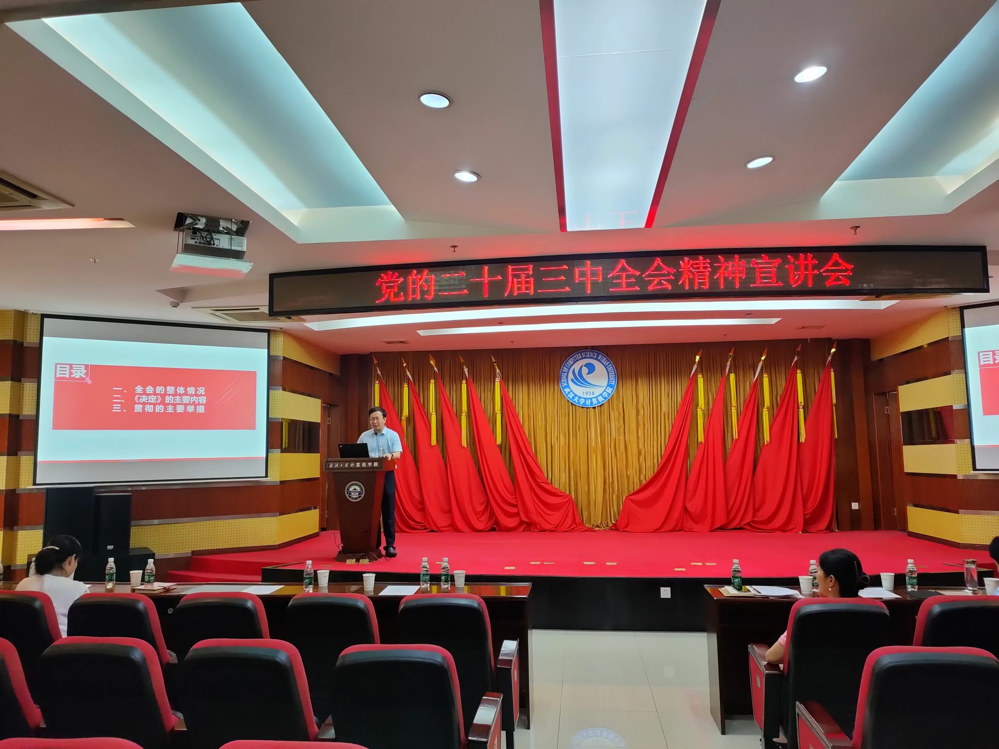 9月19日下午,计算机学院全院教职工大会在院八楼报告厅举行。大会宣讲了党的二十届三中全会精神,传达学习全国教育大会精神。院长杜博作《学习贯彻三中全会精神 深化推进教育教学改革》主题报告,部署了新学期工作;党委书记边金鸾传达习近平总书记在全国教育大会上的重要讲话精神,提出结合学院实际贯彻中央精神的要求。全体院领导班子成员、教职工200余人参加了报告会。会议由党委副书记高卫松主持。