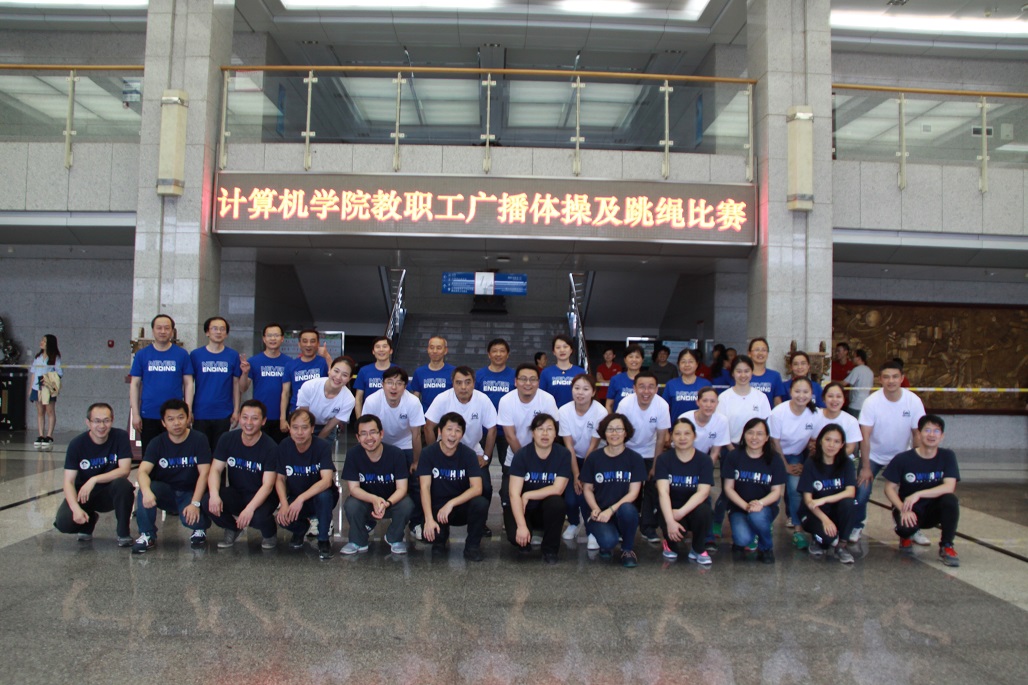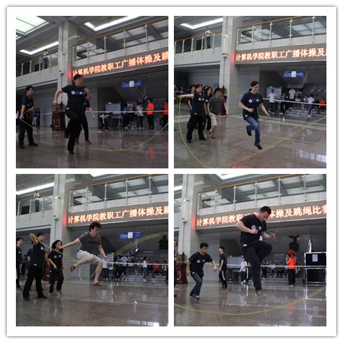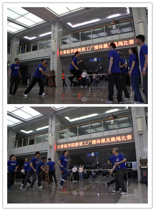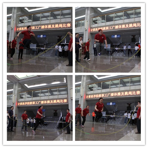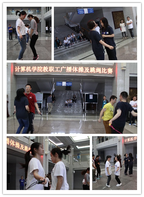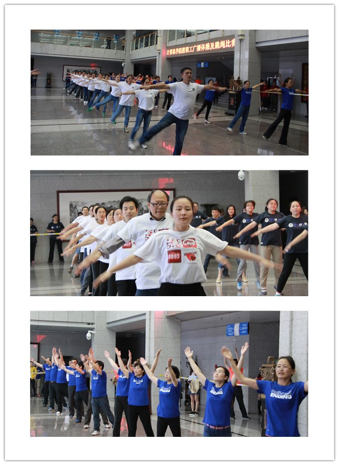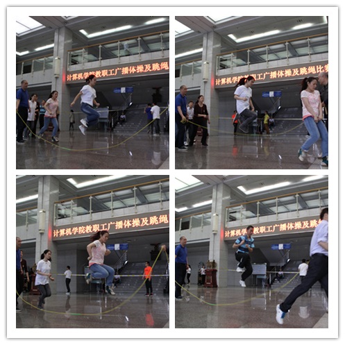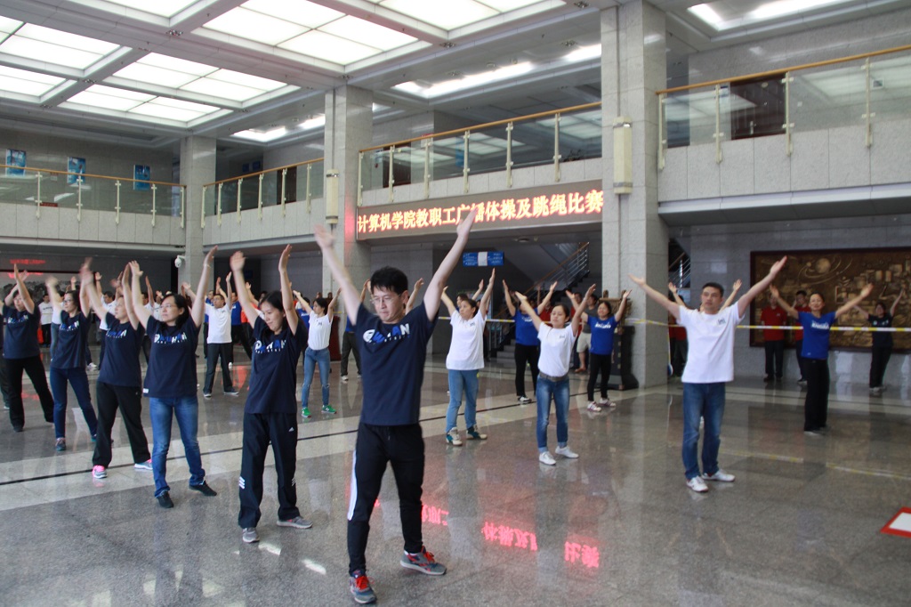 为提高广大教职工的身体素质,推广全民健身与“我运动,我健康;我参与,我快乐”的体育文化,6月2日下午,学院工会在计算机学院大楼正厅举办了教职工广播体操与跳绳比赛。