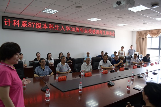 8月27日上午,校友们在学院B405会议室与曾经站在三尺讲台上传道授业的老师们和学院领导进行座谈,座谈会由校友代表刘娟主持。沃闻达书记代表学院向校友们简单介绍了学院目前发展的情况。校友们为武汉大学和计算机学院取得的一系列成就感到高兴和自豪,纷纷向老师们汇报了自己的工作和家庭情况,并表示愿意尽自己所能助力学院的发展,推动计算机学院的一流学科建设和武汉大学的一流大学建设。接着师生们共同回忆了当年的逸闻趣事。同学们纷纷表达了对老师当年不倦教诲、鼓励和包容的感激之情。恰同学少年,风华正茂,当年的莘莘学子已经成为到祖国各地建功立业的栋梁之才,老师们也为同学们取得的成绩感到自豪和骄傲。