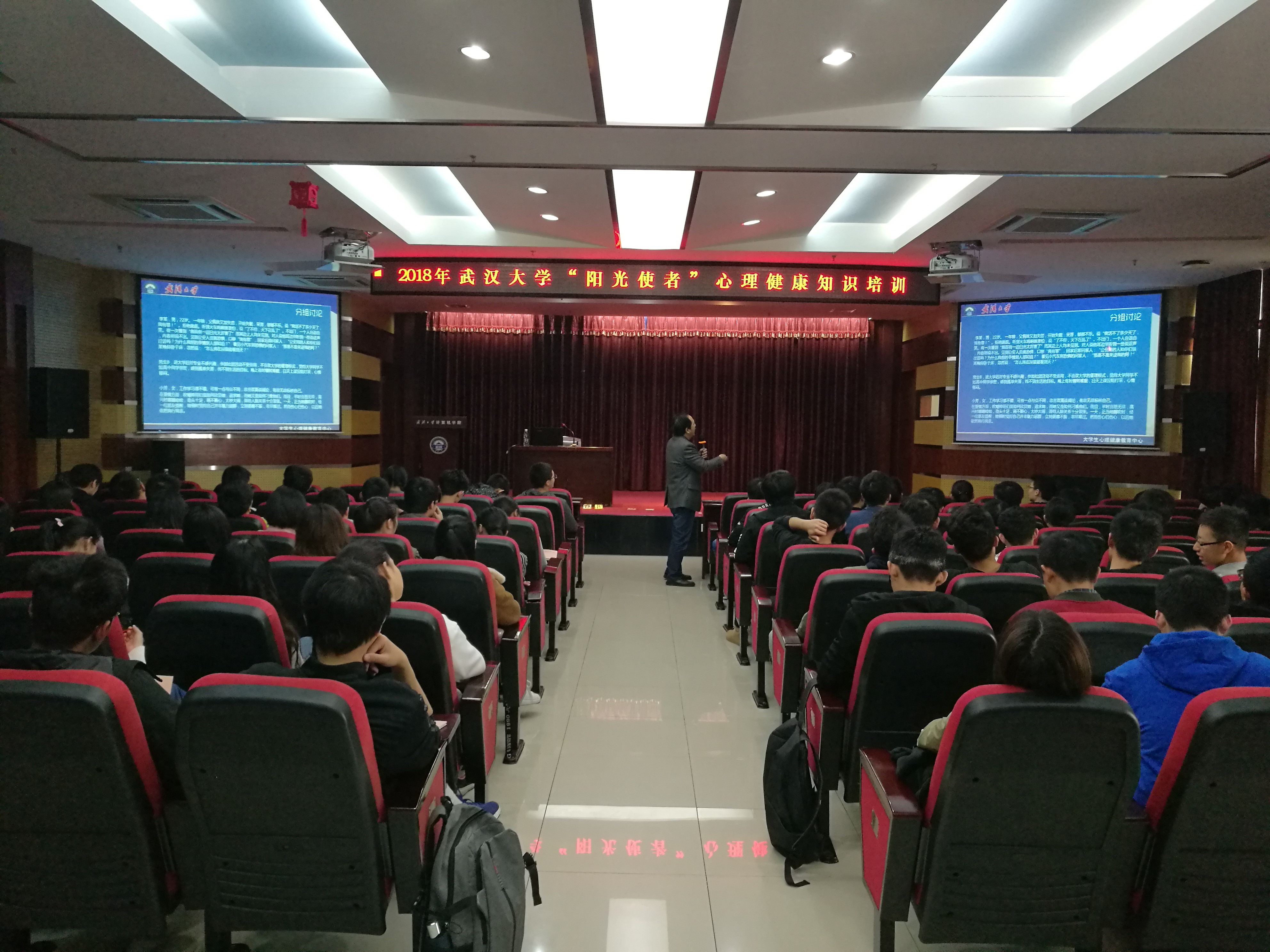 培训分两次进行,第一次培训于2018年4月15日下午在计算机学院八楼报告厅举行,主讲人为武汉大学学生心理健康中心主任赖海雄,重点讲解了如何进行有效的危机干预。第二次培训于2018年4月22日下午继续在计算机学院八楼报告厅举行,主讲人为武汉大学学生心理健康中心聂晗颖老师,介绍了大学生中经常出现的心理障碍类型以及可能产生的原因,重点讲解了阳光使者的工作职责与心理危机干预、抑郁症的相关知识。