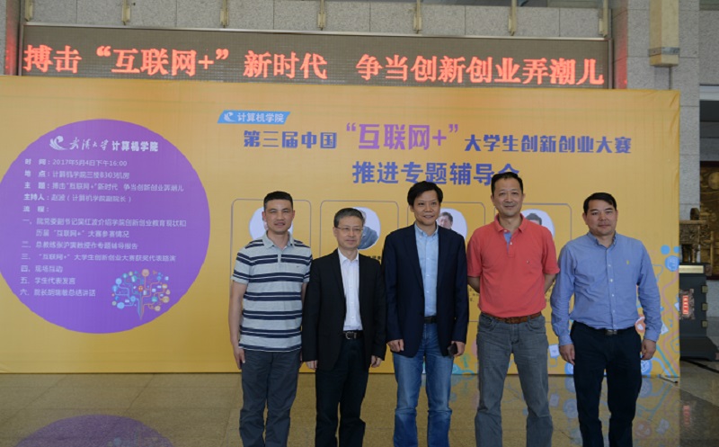 5月4日下午,B303机房座无虚席,K体育·(sports)官方网站第三届中国“互联网+”大学生创新创业大赛推进专题辅导会召开,并以此纪念五四运动98周年、庆祝第67个青年节。辅导会期间,恰逢雷军校友带领团队到访K体育·(sports)官方网站,雷军即时给同学们作了动员。