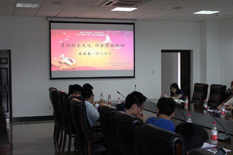 计算机学院研究生“寻访红色足迹·传承革命精神”之交流学习座谈会于2016年5月5日举行,计算机学院党委副书记胡俊英、研究生辅导员以及来自2014级11个研究生党支部的25名优秀党员代表参加了本次座谈会。会议由学生办公室副主任潘艳老师主持。