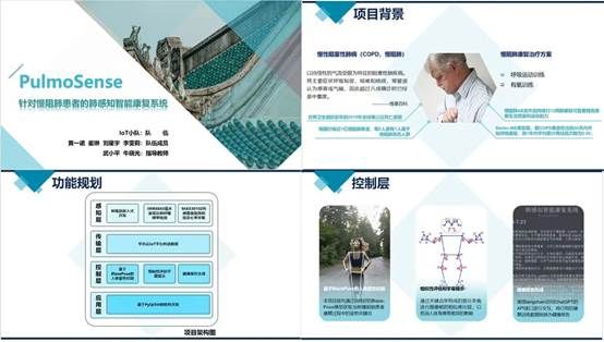 《PulmoSense-针对慢阻肺患者的肺感知智能康复系统》项目(指导老师:武小平、牛晓光),关注慢阻肺患者的康复问题,利用毫米波雷达和血氧传感器,基于BlazePose模型等技术,实现了通过实时呼吸检测,进行健康数据采集,之后数据上传云端,再给出合理的康复运动建议,最后呈现一个健康报告,来给患者提供一个集成、便携、易用的服务。
