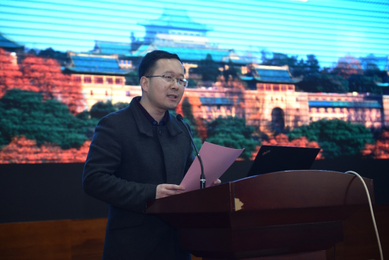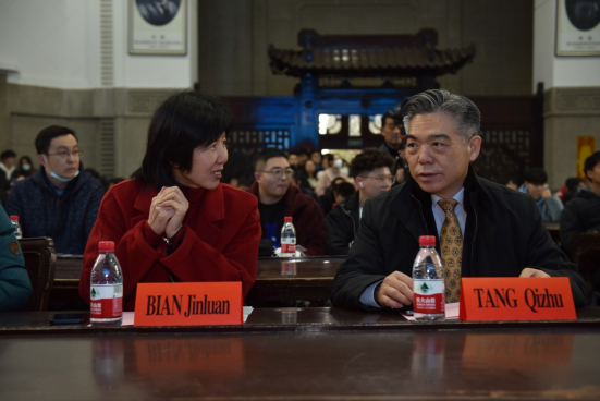 武汉大学党委常委、副校长唐其柱教授为John E .Hopcroft教授颁赠珞珈讲坛纪念牌。本科生院院长吴丹教授、人工智能研究院副院长杨志坚教授、计算机学院党委书记边金鸾、数学与统计学院党委书记左军等参加了珞珈讲坛。
