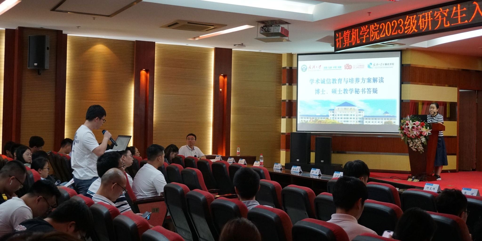 计算机学院2023级研究生新生师生见面会结束后,上午9点30分许,研究生新生入学教育系列报告会正式展开。