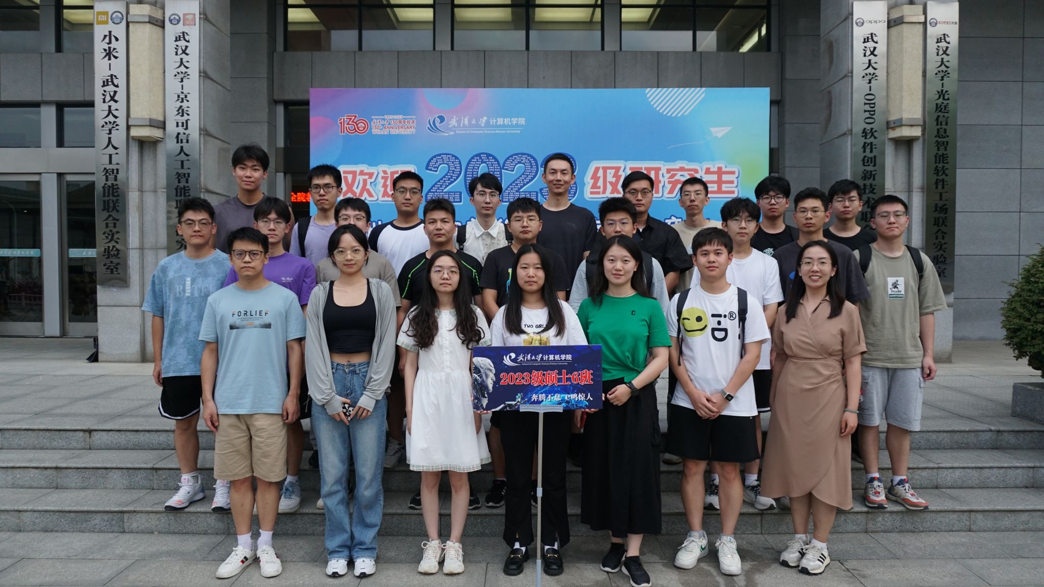 9月10日当天,研究生新生还以班级为单位,利用报告间隙与辅导员史然老师一起前往写有2023级全体研究生姓名的迎新喷绘前,拍摄了入学第一张班级合影,并召开了入学第一场新生班级见面会。