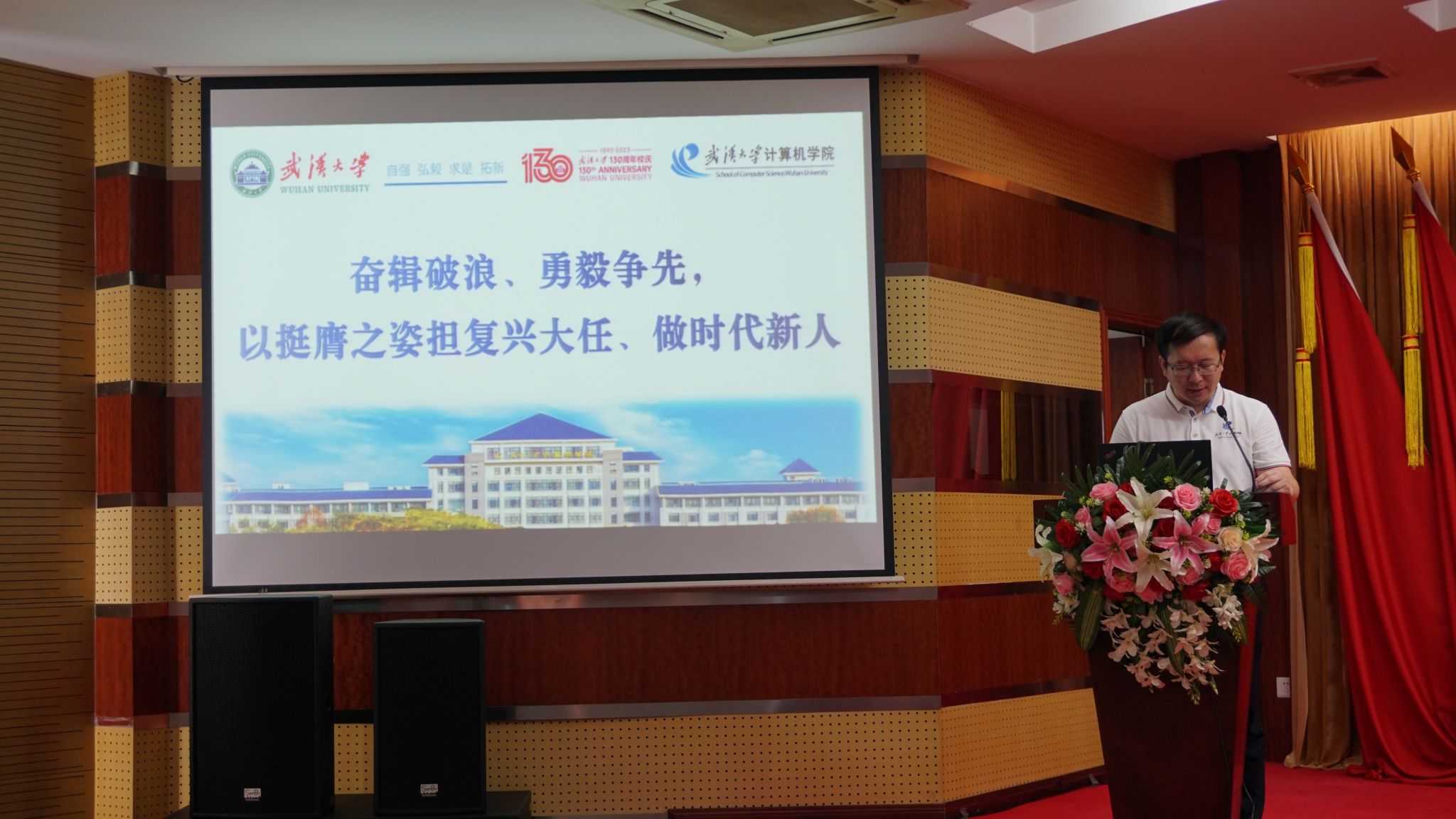 入学教育第一讲邀请到了计算机学院院长杜博。杜院长以“奋辑破浪、勇毅争先,以挺膺之姿,担复兴大任、做时代新人”为主题,围绕专业思想教育与科研思维培养,用“蓬勃发展、无比荣耀的一抹红”“开拓创新、生生不息的一抹橙”“科研理想、锐意进取的一抹蓝”为研究生新生介绍了学院发展的历史沿革、发展现状、学科建设、人才培养、科创实践等,并对即将开展的研究生生活提出了要求与希望,同时祝愿同学们在珞珈山下求得真学问、学得真本领,以真才实学献礼130周年校庆。