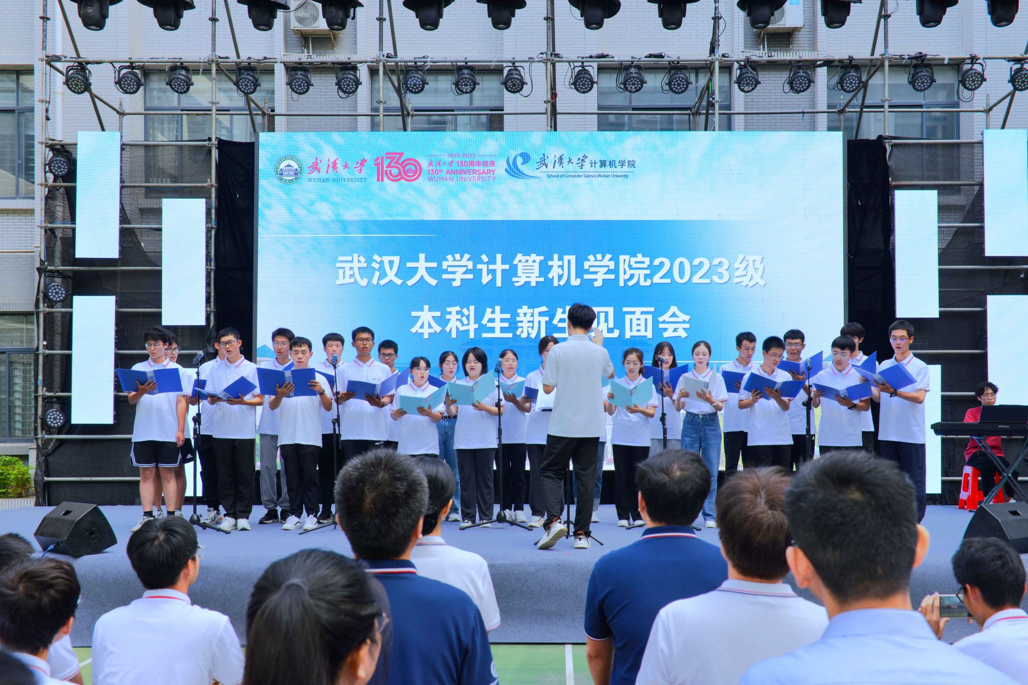 “东湖之滨,珞珈山上,这是我们亲爱的学堂”“夜空中最亮的星,请指引我靠近你”,见面会在新生合唱的动人歌声中拉开了序幕。