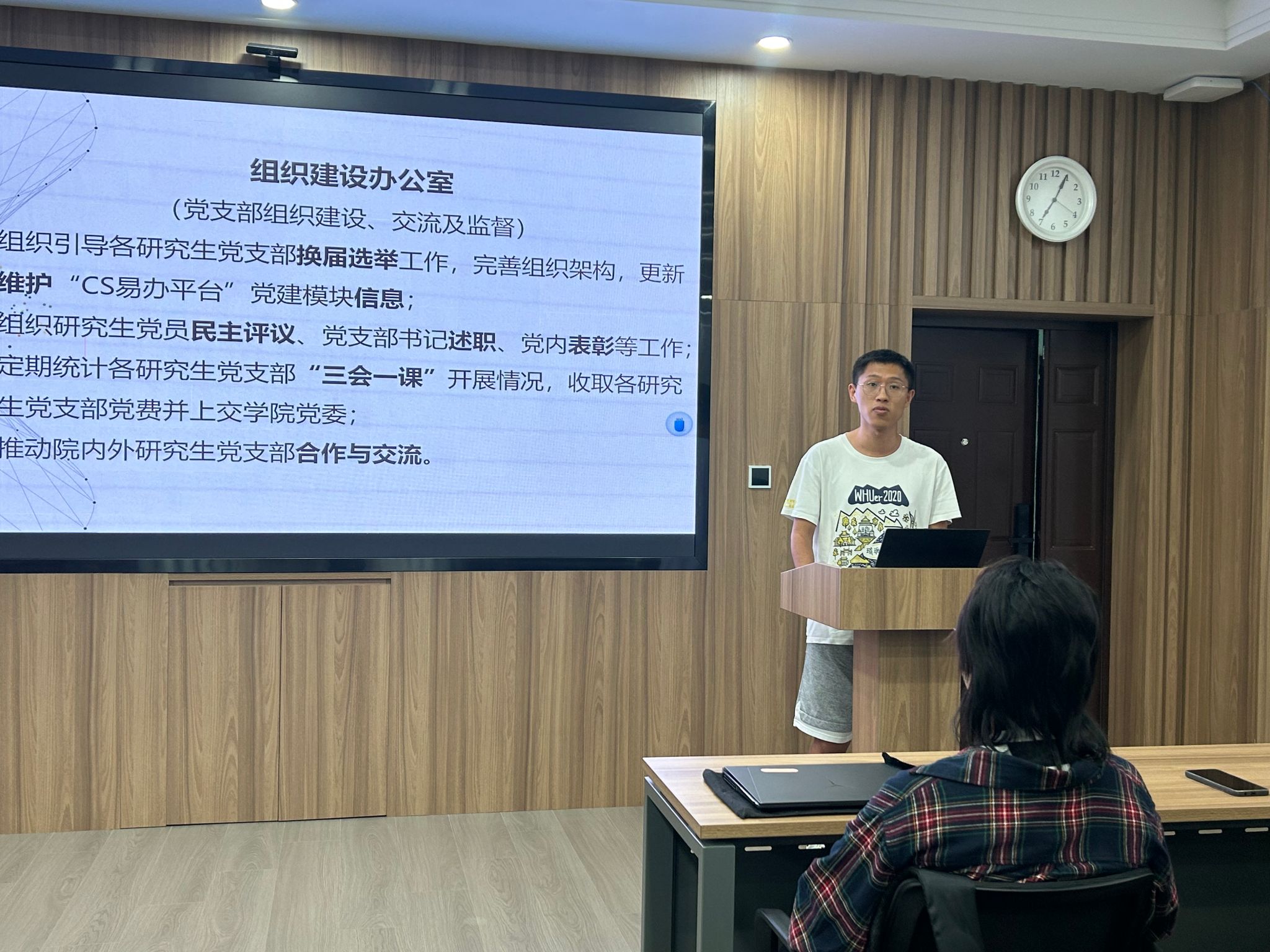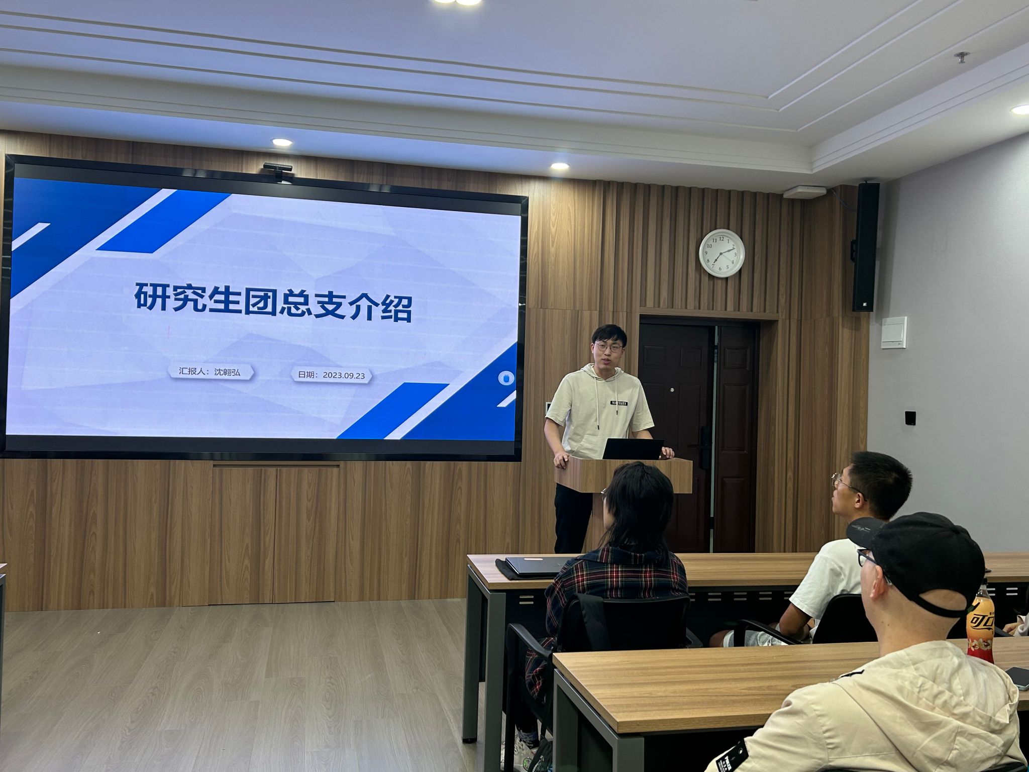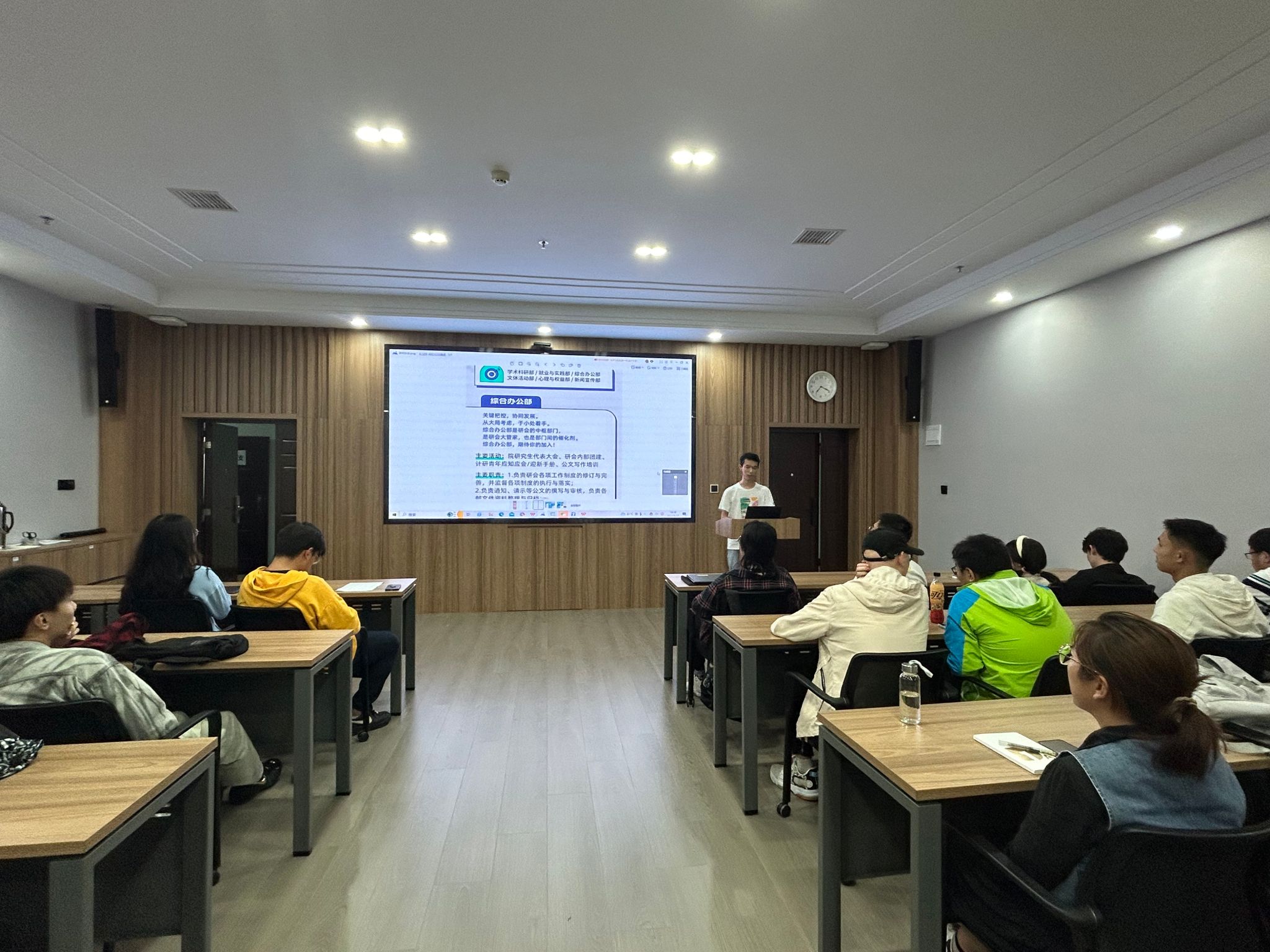 2023年9月23日19:00,计算机学院研究生组织招新宣讲答疑会在计算机学院B404会议室拉开帷幕。本次活动邀请到计算机学院研究生党总支副书记刘笑,研究生团总支副书记沈翱弘,研究生会主席团成员陈宥伊、范笑宇,以及研究生会各部门负责人,2022级和2023级研究生共同参与此次宣讲会。会议由研究生辅导员史然老师主持。
