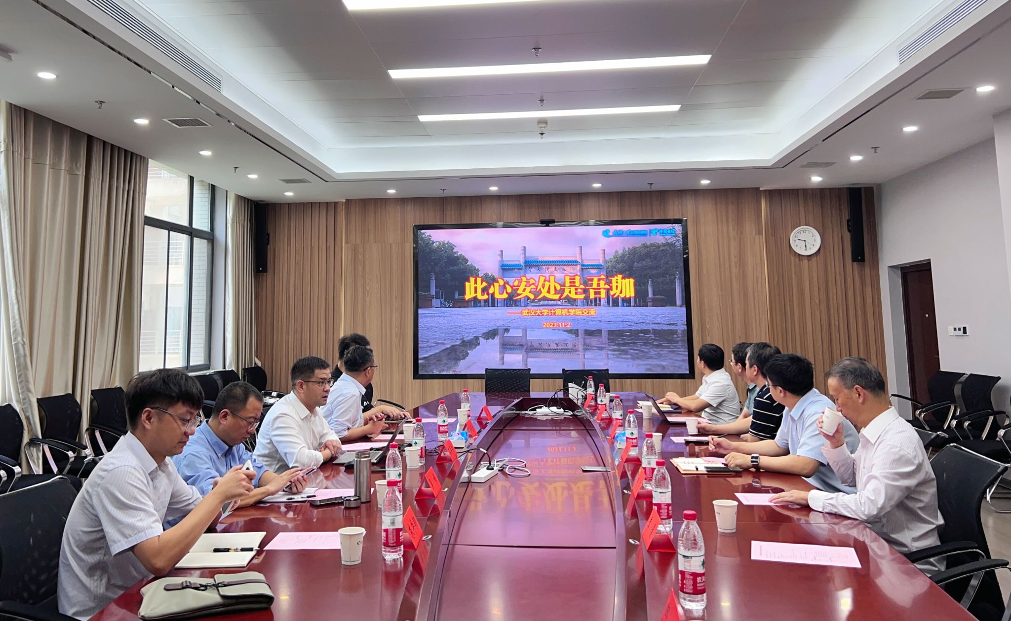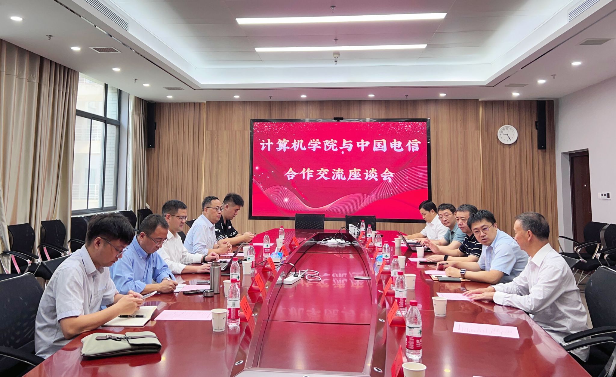 计算机学院副院长玄跻峰代表学院向到访人员表示热烈的欢迎并介绍双方参会人员。中国电信集团湖北电信战略客户事业部总经理石捍纲从历史发端、发展沿革、企业结构、战略布局和核心能力等方面向参会人员介绍了中国电信集团。并从“云”、“网”、“数”、“智”、“安”五方面展开,详细介绍了中国电信集团的核心能力和竞争力;从国家网络枢纽地位和算力基础设施角度介绍了湖北电信基本概况;石总基于武汉大学和中国电信集团的现状,对未来双方合作进行了展望。他表示未来希望与武汉大学和计算机学院能够共建科研平台、开展重点领域技术合作、推动建设“数字孪生”高校和全方位开展产学研用合作。