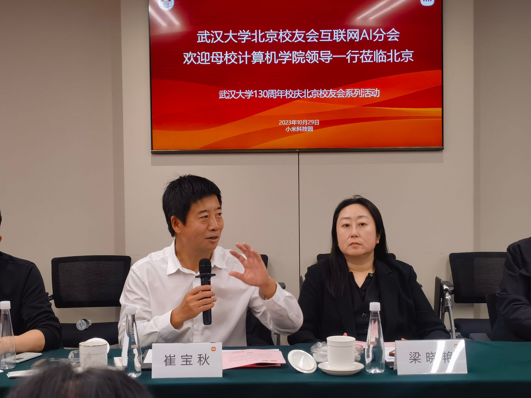 崔宝秋会长对母院和武汉校友会计算机分会一行的到来表示真切欢迎,对母院的关心和重视表达了衷心感谢。他表示,母院近年来蓬勃发展的势头令校友们深感振奋和自豪,校友企业将持续从人才培养、产学研合作等方面支持母院更上一层楼。最后,他表达了进一步加强北京互联网AI分会与母院和武汉校友会计算机分会常态化互动交流的期待。