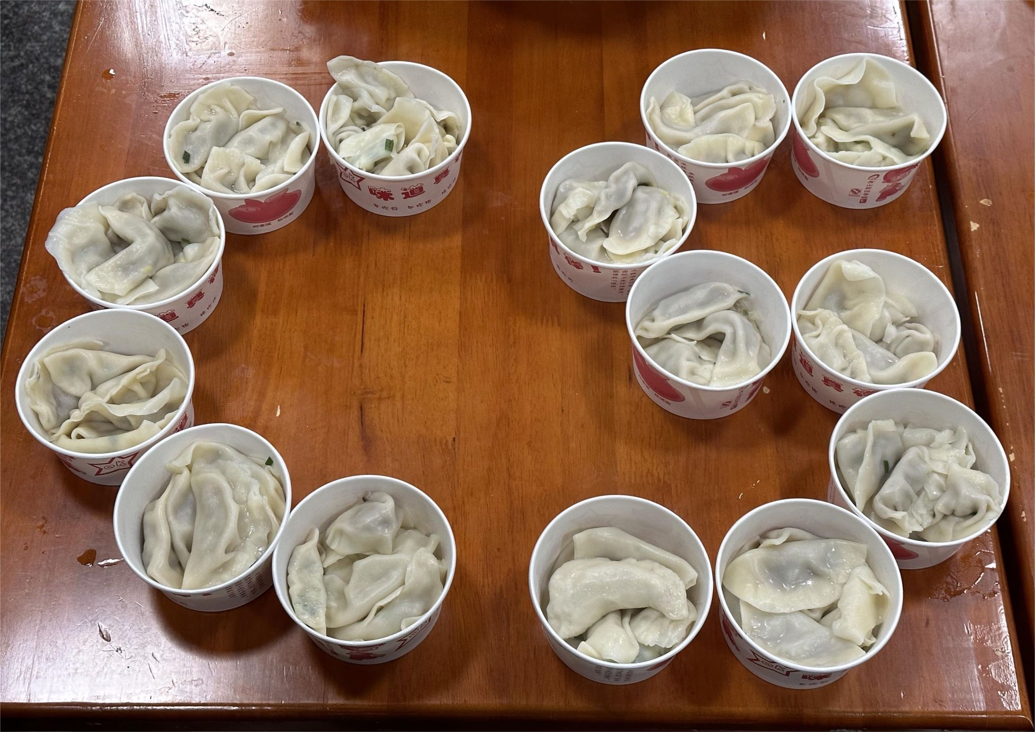 “煮饺子喽!”随着后勤师傅的一声呼喊,一个个白白胖胖的饺子“扑通扑通”地跳入锅中。煮熟后,同学们开心的吃着热气腾腾的水饺,风风火火的景象好似过大年。同学们还将亲手制作的水饺送到了食堂阿姨和工作人员的手中,感谢后勤部门的辛苦付出。端起一碗水饺,温暖一步到“胃”,共享专属冬至的美好“食”光。