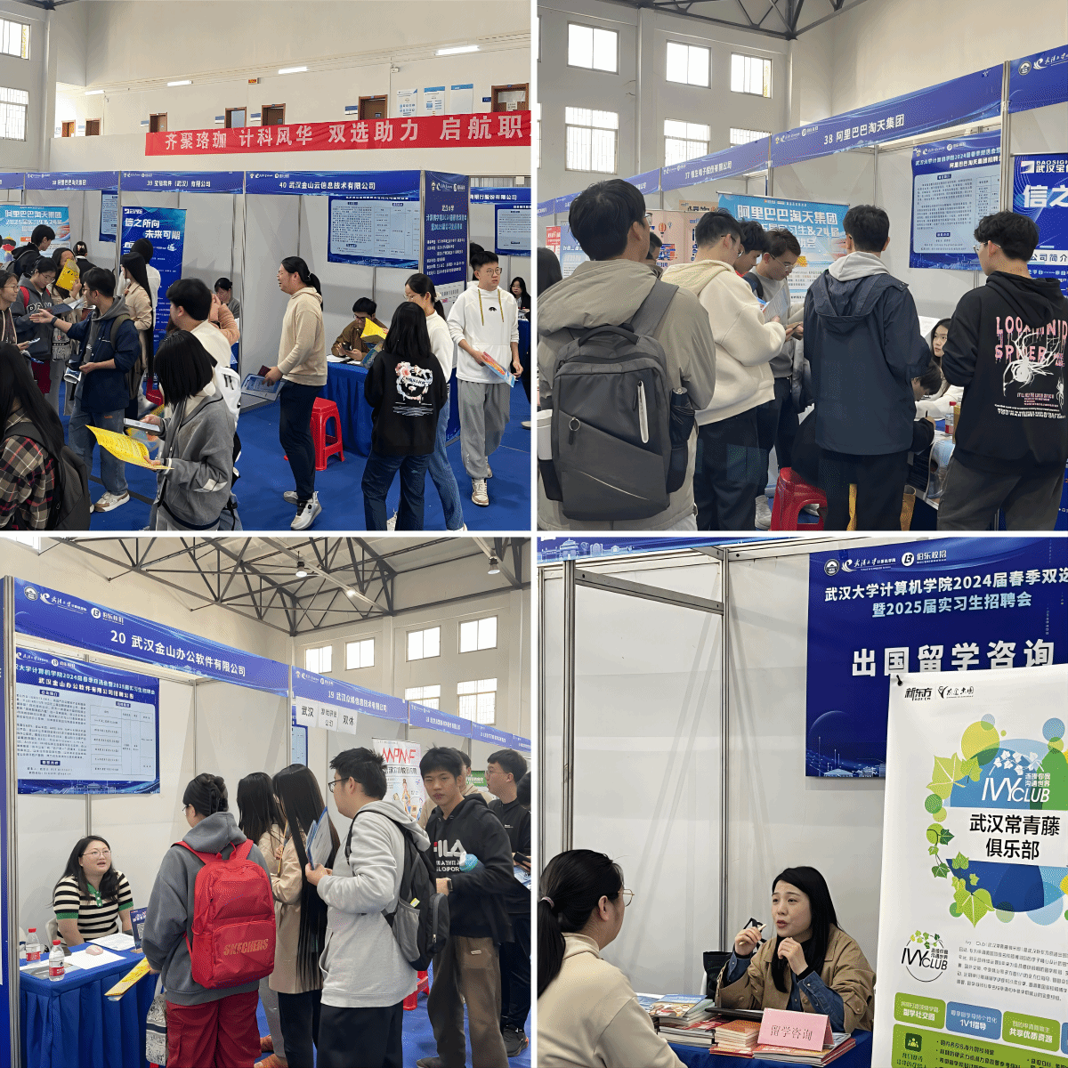 本次双选会现场不仅吸引到淘天集团、美团、金山办公、招商银行等优质企业参会,更有长江证券、汉王科技、武汉众娱等一众校友企业倾力支持,共计提供各类岗位需求2000+,覆盖技术研发、产品运营、策划执行等众多职位。同时学院特别邀请到前途出国等专业机构,现场为准毕业生们提供出国留学咨询、语言提升学习、简历门诊等暖心就业服务。