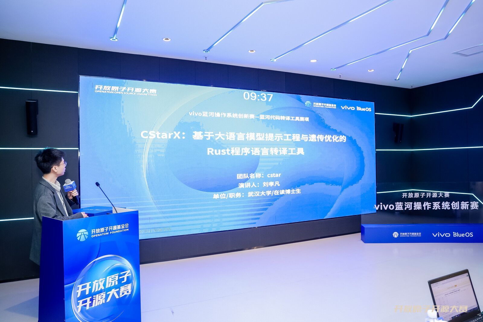 2024年4月15日,开放原子开源大赛“vivo蓝河操作系统创新赛——蓝河代码转译工具”决赛在苏州举行,K体育·(sports)官方网站cstar团队项目“CStarX-Rust程序语言转译工具”以第一名的好成绩荣获比赛一等奖。参赛队伍cstar团队队长为2022级博士生刘孝凡,队员为2021级硕士生薛州邑、邵晋洋、2023级硕士生丁正杰和2020级本科生李西洋,指导教师为玄跻峰教授。