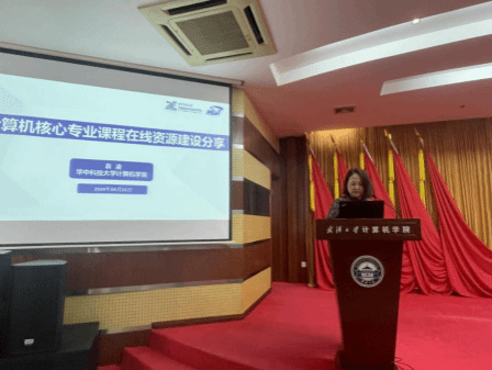 袁凌教授作了题为《计算机核心专业课程在线资源建设分享》的专题报告,她从教学改革、软件课程体系构建、线上线下混合教学模式示例等多方面进行了数据结构、软件工程等多门计算机核心专业课程的教学及资源分享。