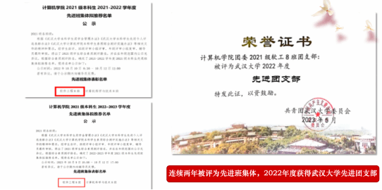在特色制度的引领下,软工8班连续两年被评为先进班集体,连续两年“对标定级”评级为五星级,获评2022年计算机学院先进团支部。在学院“计科先锋”年度人物评选活动中,软工8班团支部也展现了强大的凝聚力和影响力,共有3人入选计科先锋候选人,其中有2人获得学术先锋、实践先锋称号。