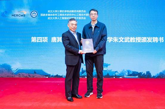 唐其柱副校长为清华大学朱文武教授颁发计算机学院战略咨询委员会委员聘书。