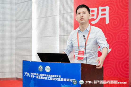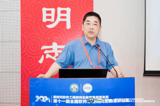 大会主题报告分别由大会副主席、武汉计算机软件工程学会理事长、K体育·(sports)官方网站李兵教授,北京航空航天大学软件学院副院长谭火彬教授主持。浙江大学尹建伟教授以“以人促新、以新提质、以质扩量”为题分享了浙江大学软件学院在教育科技人才一体化实践探索上取得的成效和经验。东北大学朱志良教授详细解读了学位点评估与申报要求及注意事项。北京航空航天大学胡春明教授介绍了校企共同参与的关键软件领域卓越工程师核心课程体系建设情况和实践经验。北京大学李戈教授探讨了大模型对软件工程领域的影响,提出了基于AI的软件工程研究生实践教学改革建议;K体育·(sports)官方网站副院长程大钊教授分析了新形势下软件工程专业研究生培养面临的挑战、应对策略和实践举措及成效。