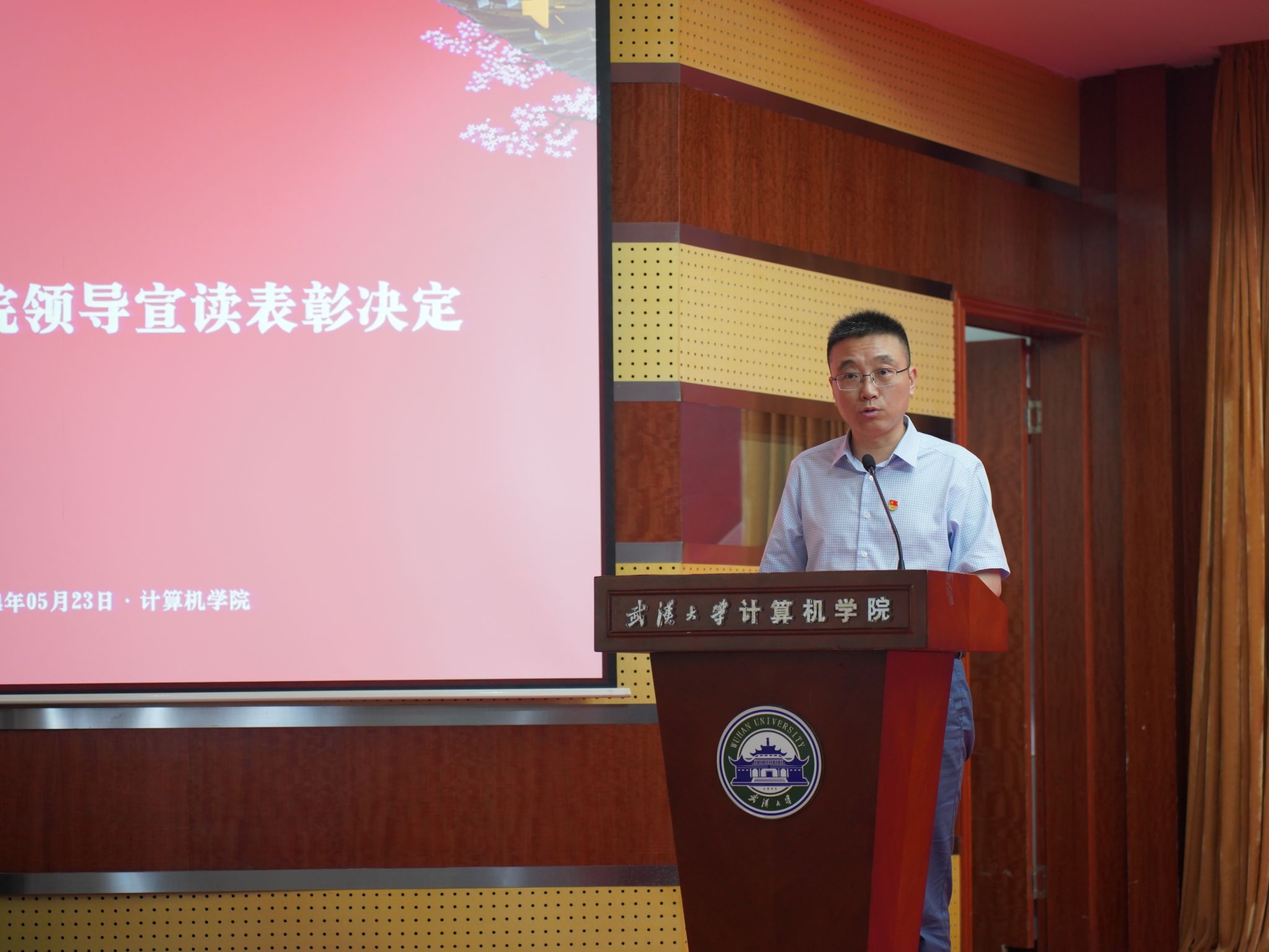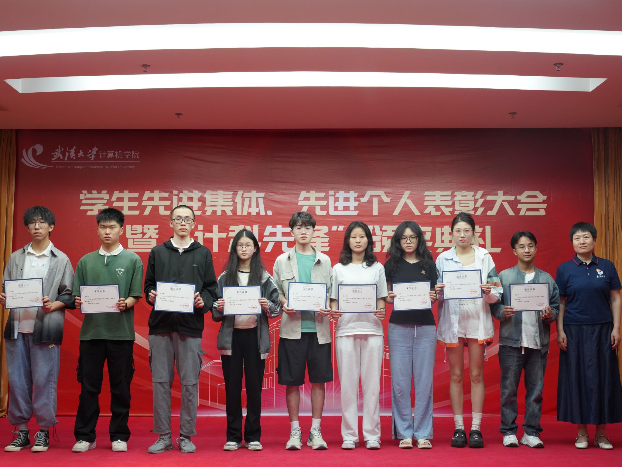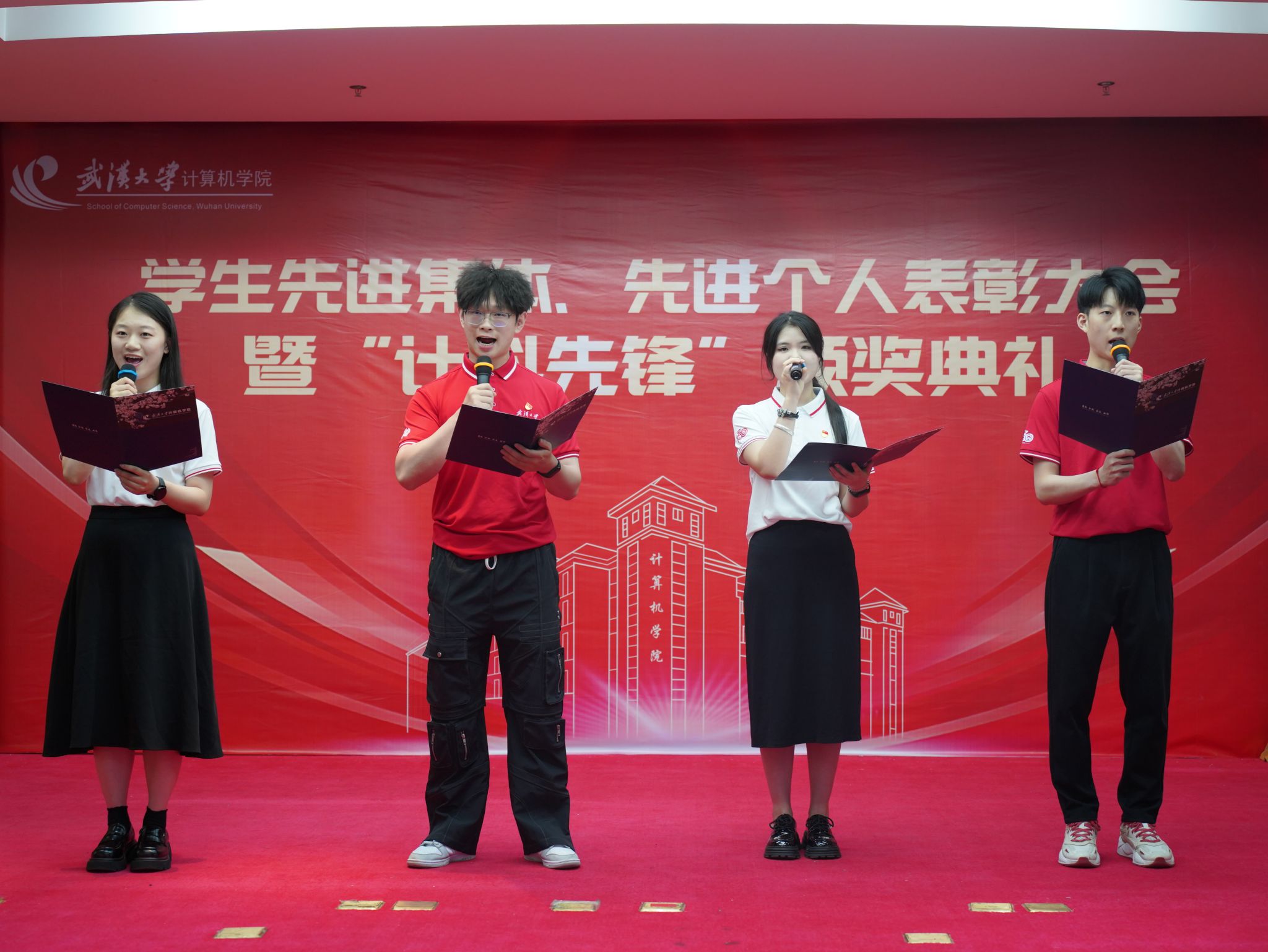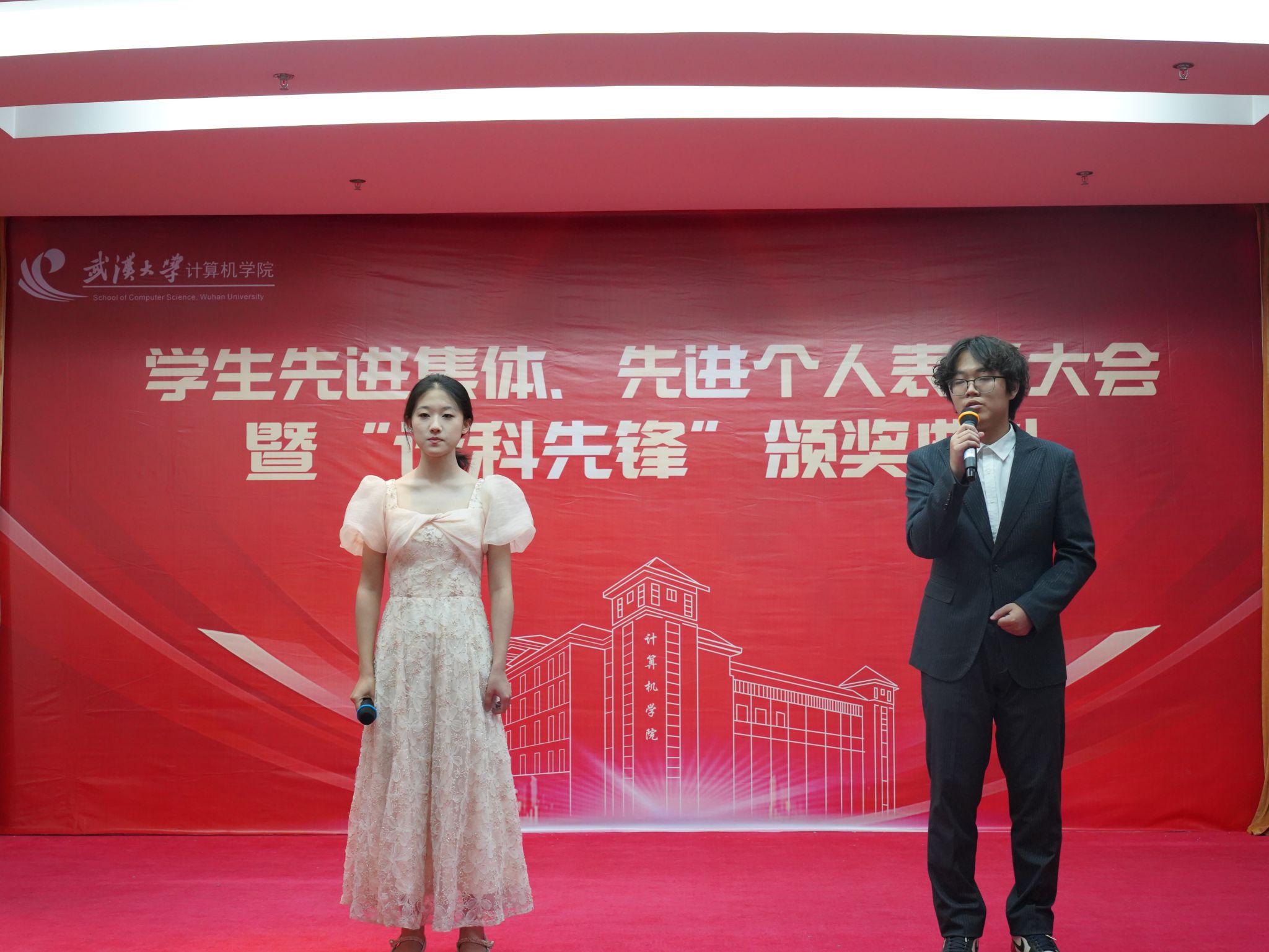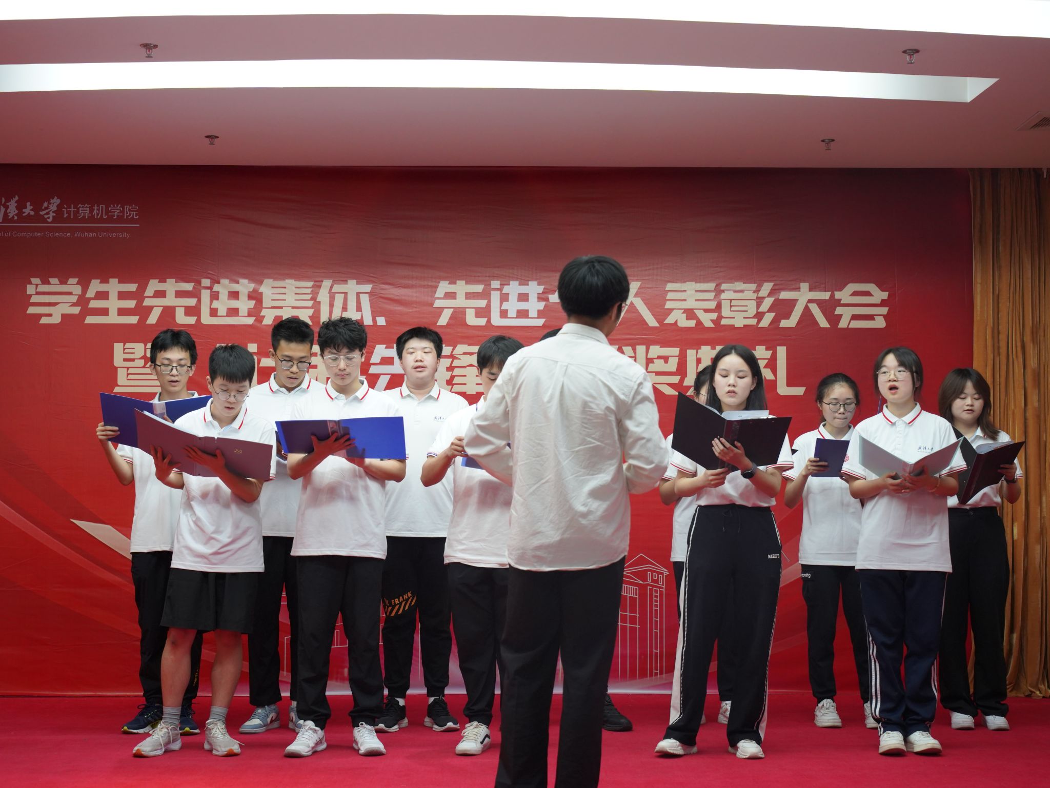 表彰大会在雄壮的国歌声中拉开帷幕。高卫松宣读学院表彰文件,经研究决定,授予陈宥伊、花仲钰、黄文柯、万冠呈、汪家伟、材智先锋团队、胡成超、王苏庆、计算机学院学生足球队、史非等10名学生或团队计算机学院第二届“计科先锋”年度人物荣誉称号,授予本科生第五党支部、基础软件实验室研究生党支部等5个学生党支部“计算机学院先进党支部”荣誉称号,授予刘笑等43名学生“计算机学院优秀党务工作者”荣誉称号,授予凌灵等116名学生“计算机学院优秀共产党员”荣誉称号,授予2022级计算机类6班团支部、2022级硕士5班团支部等17个学生团支部“计算机学院先进团支部”荣誉称号,授予王泽生等97名学生“计算机学院优秀共青团干部”荣誉称号,授予张泽远等301名学生“计算机学院优秀共青团员”荣誉称号,授予2020级软件工程1班、2022级硕士3班等35个班级“计算机学院先进班集体”荣誉称号,授予计算机学院C307实验室等10个实验室“计算机学院文明实验室” 荣誉称号,授予葛翰霖等182名学生“计算机学院优秀学生干部”荣誉称号,授予常卓卿等473名学生“计算机学院社会活动积极分子”荣誉称号。以他们为代表的计科学子努力拼搏、奋发有为,展现了新时代K体育·(sports)官方网站青年学生的奋斗与担当。