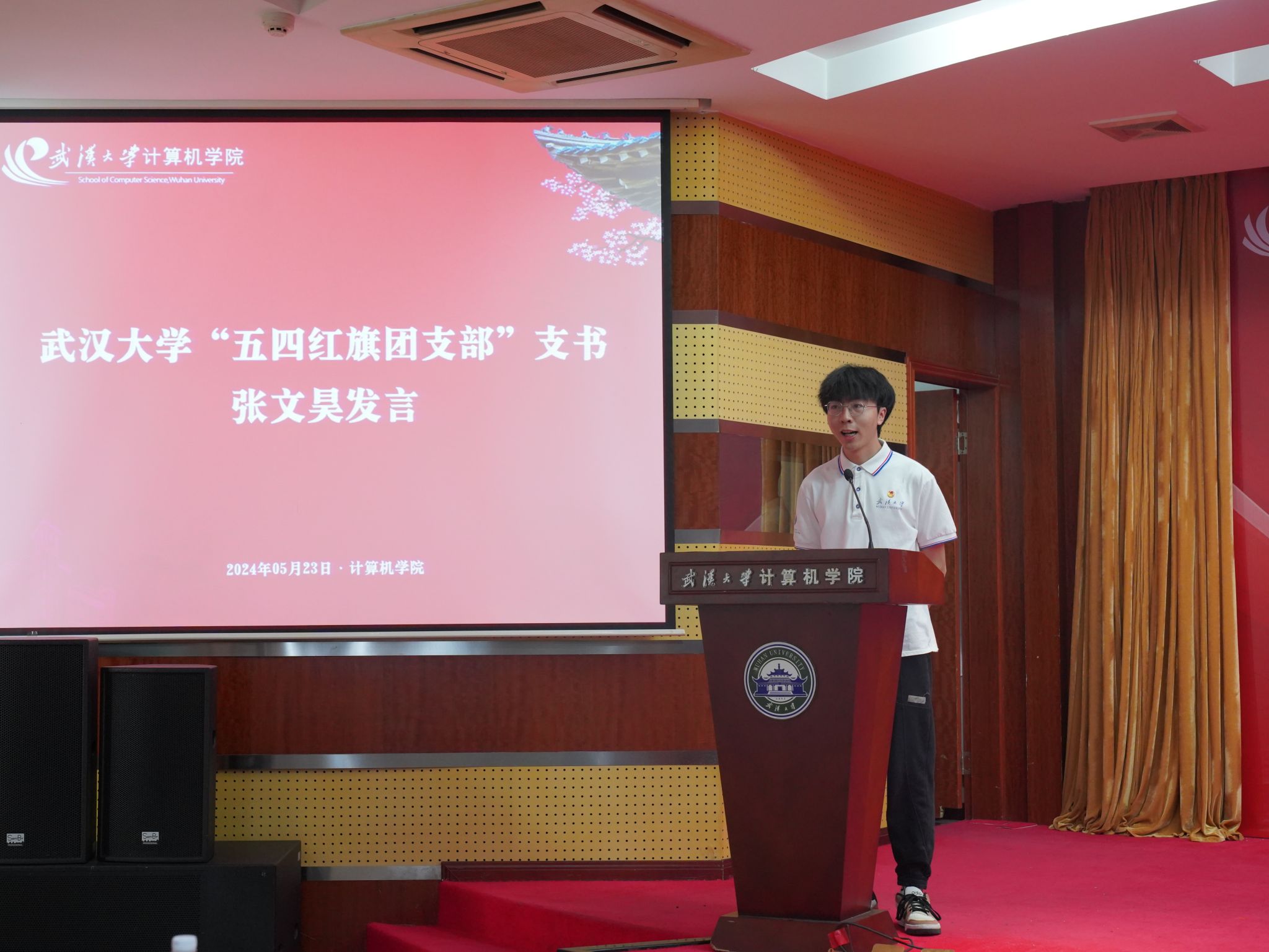 武汉大学“五四红旗团支部”支书、2021级本科生张文昊分享了团支部建设的工作体会。他谈到,一年来,2021级软工8班团支部以思想引领为根本,以学风建设为抓手,以品牌活动为特色,取得多项优异成绩,努力营造更具凝聚力的团支部大家庭,力求充分发挥好先锋团支部的引领带头作用。