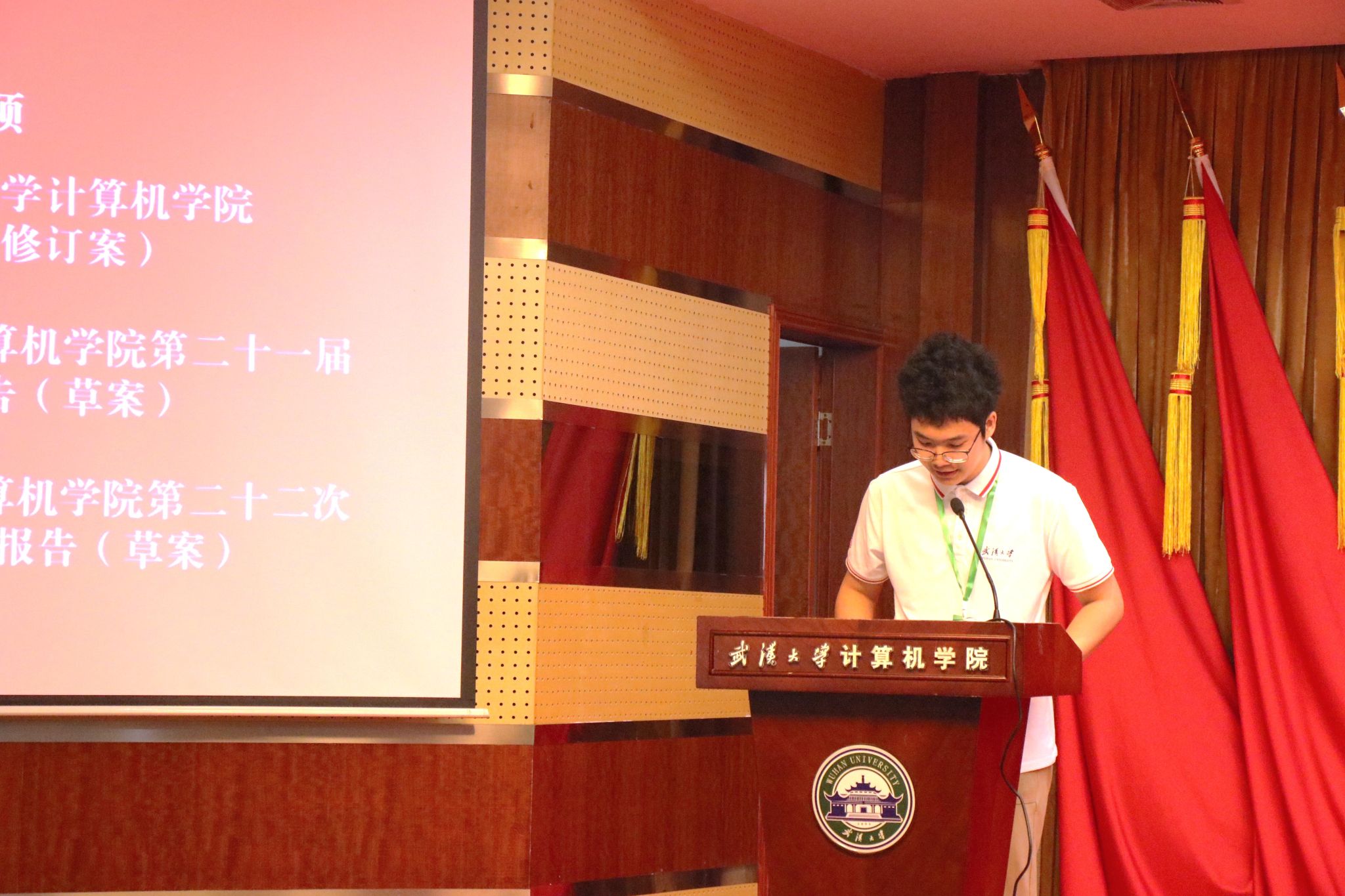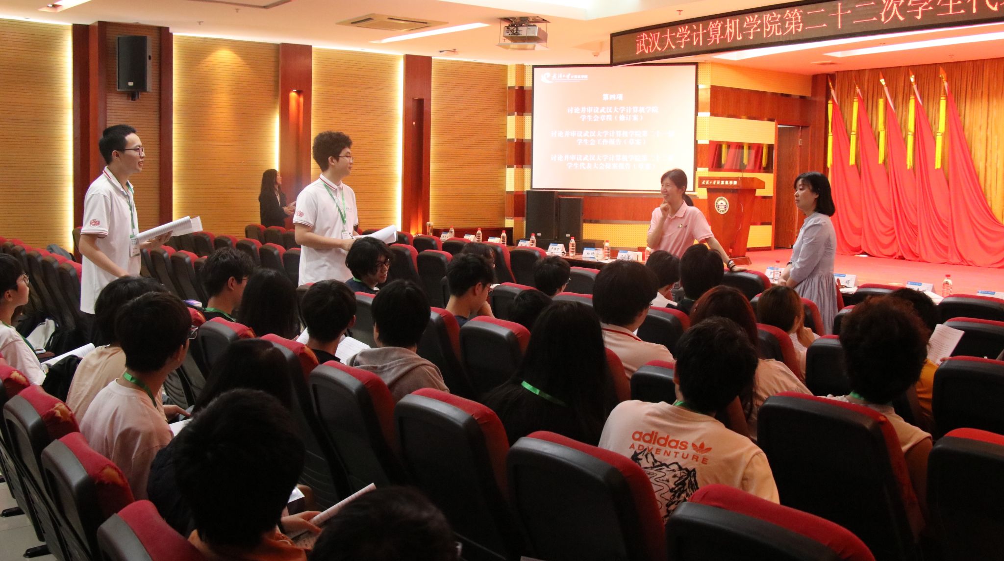 5月30日下午,K体育·(sports)官方网站第二十二次学生代表大会于计算机学院八楼报告厅举行。计算机学院党委书记边金鸾、党委副书记金娟、纪委书记杨晓岚、各位本科生辅导员、武汉大学学生会主席团成员罗惠丹、各兄弟院系学生会代表及K体育·(sports)官方网站238名学生代表参加了会议。