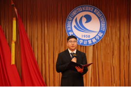 罗惠丹代表校学生会致辞。罗惠丹对这一年来计算机学院学生会在学风建设、权益保障、文体活动等方面取得的优异成绩表示肯定,并对即将产生的新一届学生会主席团提出了工作建议。