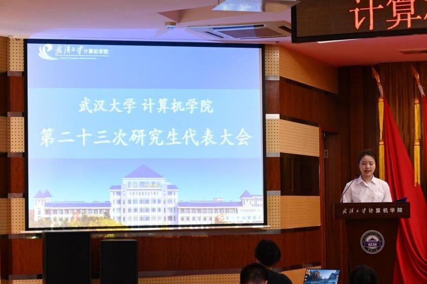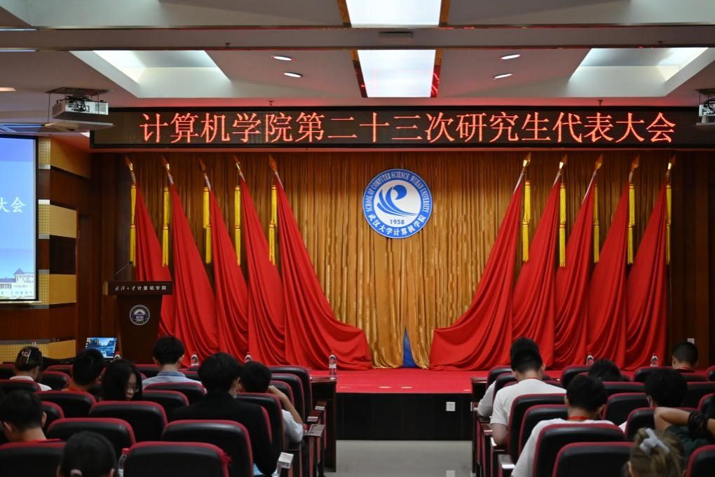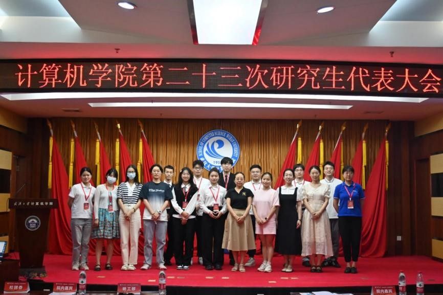 2023年6月15日下午,计算机学院第二十三次研究生代表大会在计算机学院八楼报告厅胜利召开。校团委副书记伍林,研工部综合办公室主任王丹,计算机学院党委书记边金鸾、纪委书记杨晓岚、副院长程大钊,校研会主席团成员邓力铭,学院研究生办公室的老师,以及各兄弟院系研究生会的主席团成员列席本次大会。62名研究生代表出席了本次会议。大会由计算机学院第二十二届研究生会主席团成员李璟瑜主持。