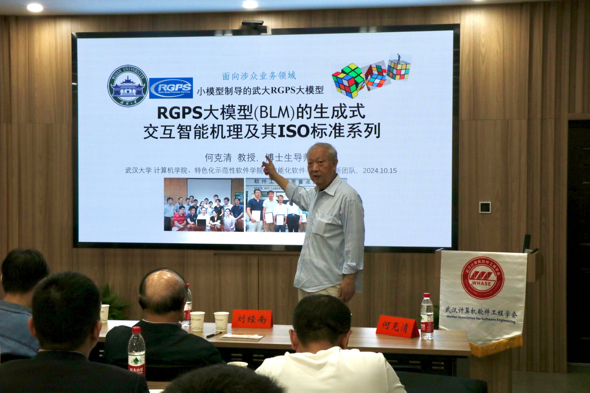 2024年10月15日14:30,在K体育·(sports)官方网站 B404 会议室,一场学术盛宴拉开帷幕。K体育·(sports)官方网站“银龄”教授何克清老师带来了以“武大RGPS大模型(BLM)的生成式交互智能机理及其ISO标准系列”为主题的精彩报告。中国工程院院士刘经南教授,武汉大学科转中心副主任苏科华教授,计算机学院院长杜博教授、副院长彭蓉教授、李兵教授,学院教师代表和研究生代表,以及兄弟院校同行教授、专家和科研团队研究生等参加了本次学术报告会。学术报告会由计算机学院副院长玄跻峰教授主持。