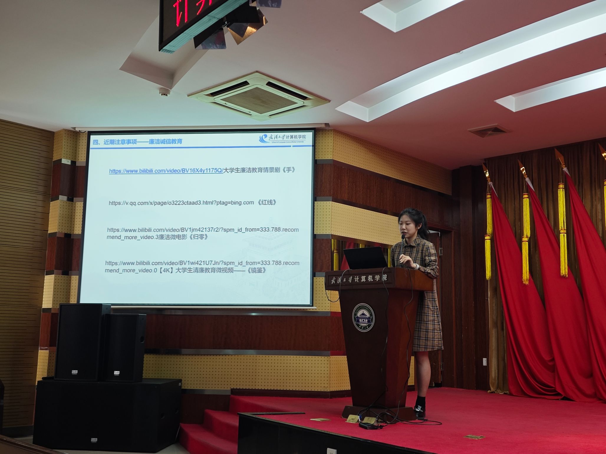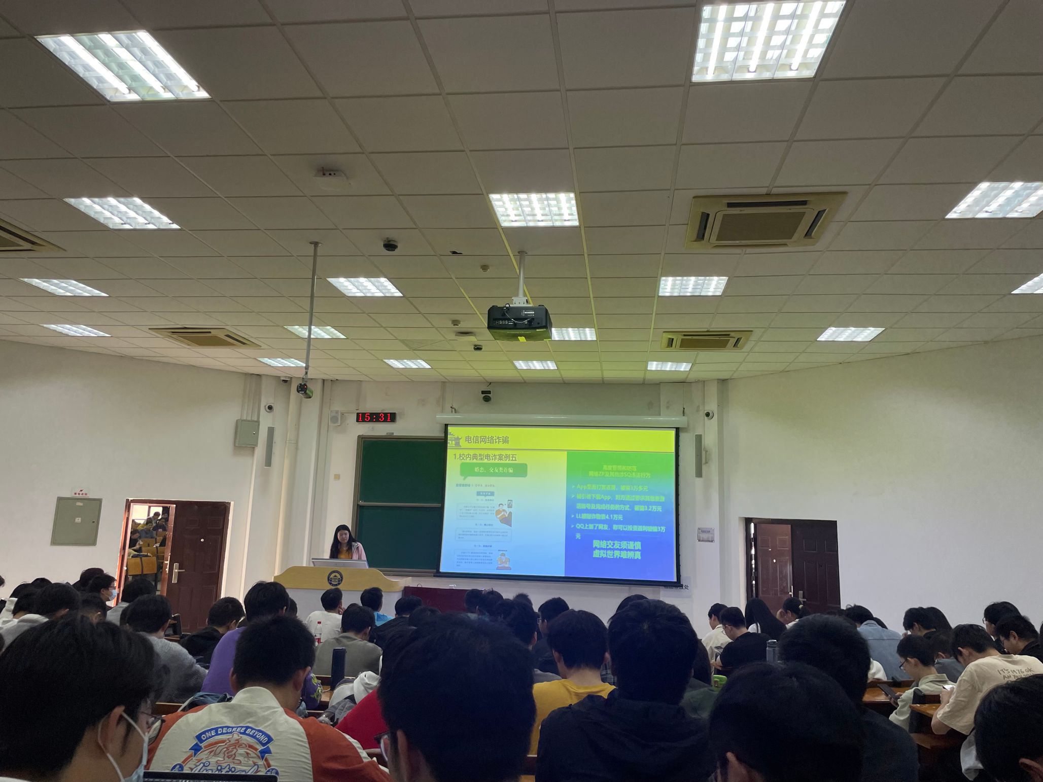 会上,各年级辅导员剖析校园诈骗实例,强调冬季防火安全,提醒学生规范使用电器,聚焦网络文明行为规范,引导学生树立正确的网络道德观,同时进行了廉洁诚信教育。