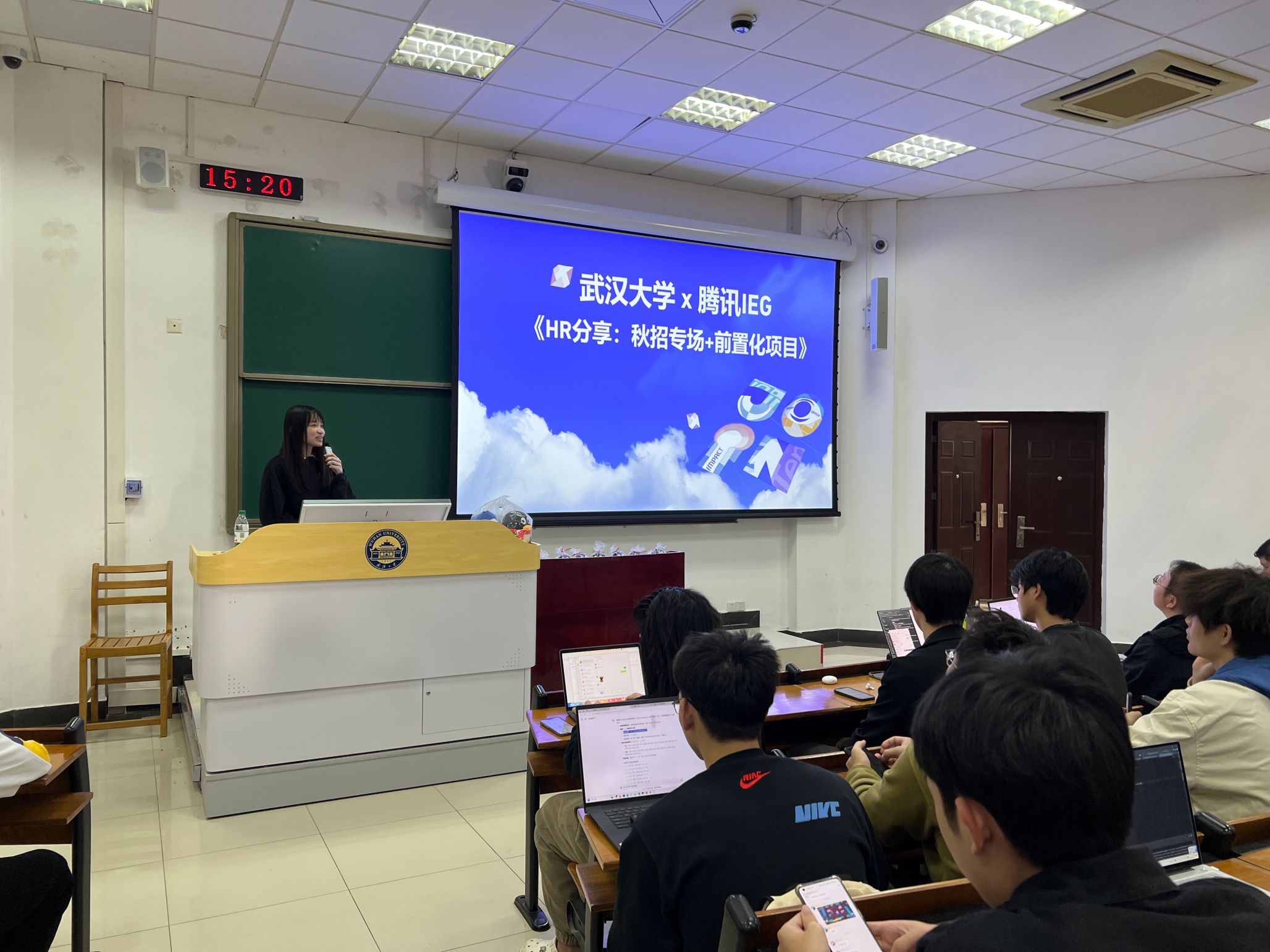 此外,各年级也结合不同阶段学生的需求为同学们准备了干货满满的分享。2022级邀请到腾讯和泰康科技公司带来就业信息分享,HR分析了目前的就业形势,并且带领同学们深入探索优秀简历的精髓。会上兼职辅导员张越同学也分享了竞赛经验。2023级邀请到校团委大创中心挑战杯项目组负责人李雨轩同学为大家介绍“挑战杯”系列竞赛,她从赛事政策、赛事规则、备赛要点、信息获取四个方面进行了深入讲解,为大家清晰地指明了参加挑战杯的途径和思路。