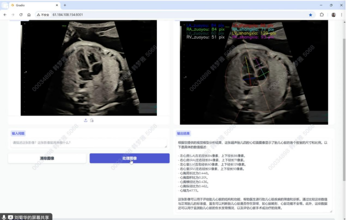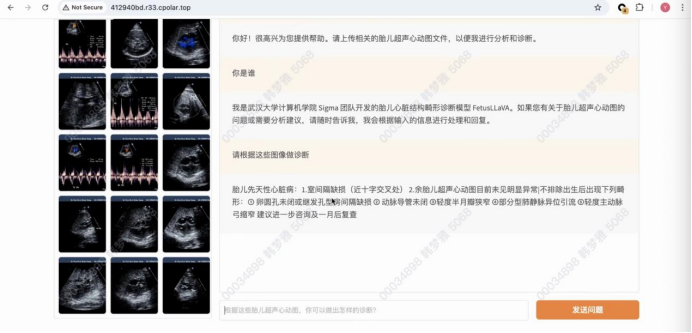 在项目和课题汇报结束后,项目组在项目网站(http://fetusgpt.whu.edu.cn/)发布了胎儿超声影像智能测量多模态大模型以及结构畸形智能诊断大模型系统,并演示了系统如何通过图像输入和提问生成文本描述、生物测量及诊断结果。项目组还邀请成员进行测试并提供反馈,以便后续优化系统。