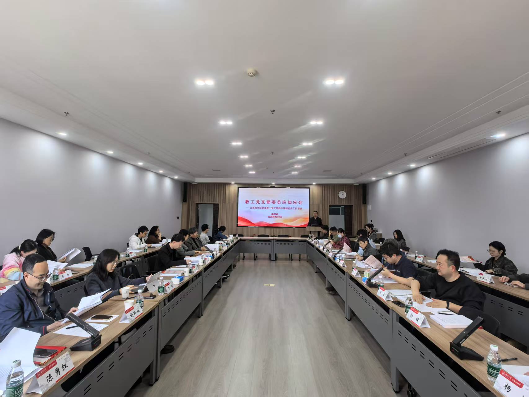 为进一步规范和加强基层党组织建设,提升教工党支部支委履职能力,2025年4月3日下午,计算机学院在B404会议室召开教工党支部支委业务培训会议。学院党委书记边金鸾,党委副书记高卫松、陈琛出席会议,计算机学院与人工智能学院各教工党支部支委成员参加会议,纪委书记杨晓岚主持。