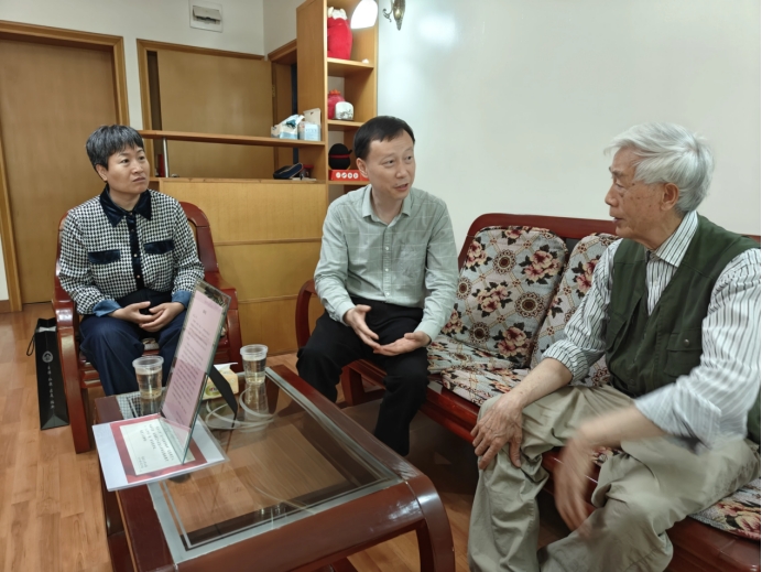 院领导来到湖北省五一劳动奖章获得者吴产乐教授家中,倾听吴老师的先进事迹,了解其健康和生活状况,送上节日祝福。吴老师多年来退休不退岗,为学院发展无私奉献,关心学院发展,谈心交流中,吴老师建议学院应该集中优势力量发展重点学科,引进学科领军人才,提高学科地位。