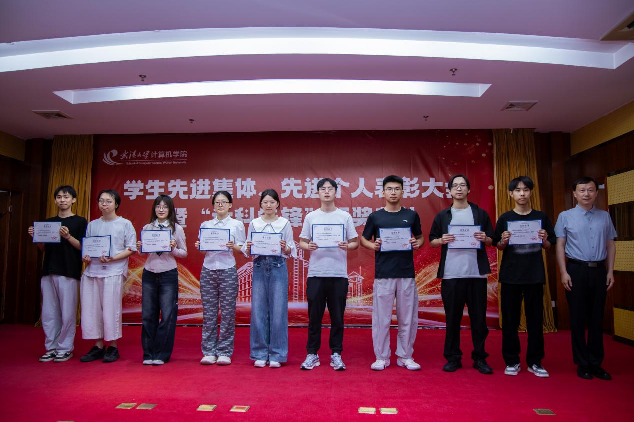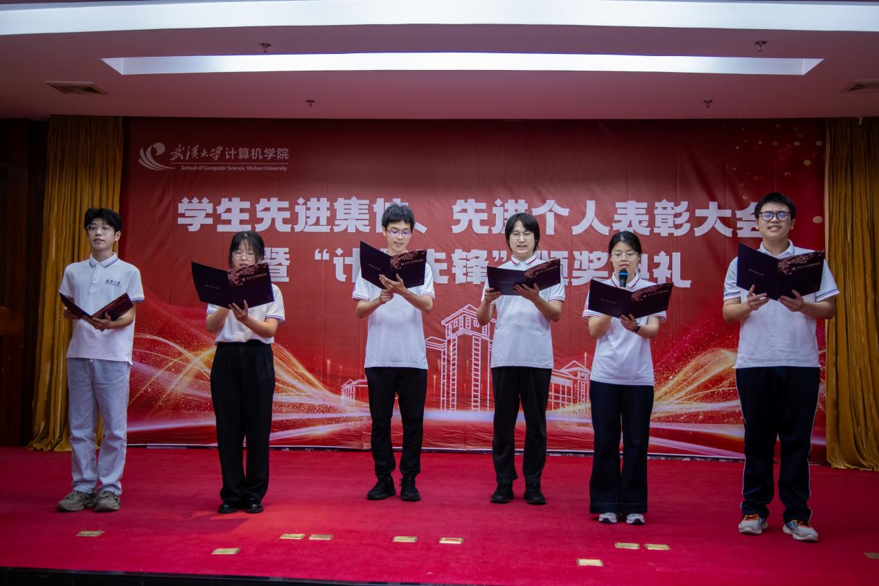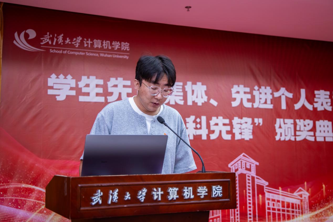 在国歌的雄壮乐章中,计算机学院表彰大会正式启幕。陈琛宣读学院表彰文件,经研究决定,授予卢思源、赵衍枫、彭天硕、谭子函、刘远巍、段信维、Mars团队、杨栩奕、计算机学院篮球队、计算机学院辩论等10名学生或团队计算机学院第三届“计科先锋”年度人物荣誉称号。授予基础软件实验室研究生党支部等4个党支部“计算机学院研究生先进党支部”称号;授予本科生第五党支部等2个党支部“计算机学院本科生先进党支部”称号;授予刘笑等52名学生“计算机学院优秀党务工作者”称号;授予穆炳君等110名学生“计算机学院优秀共产党员”称号。授予2021级博士2班团支部等6个团支部“计算机学院研究生先进团支部”称号;授予2021级软工8班团支部等21个团支部“计算机学院本科生先进团支部”称号;授予朱康鑫等123名学生“计算机学院优秀共青团干部”称号;授予钟起煌等322名学生“计算机学院优秀共青团员”称号。授予2023级博士3班等6个班级“计算机学院研究生先进班集体”称号;授予2024级雷军班等36个班级“计算机学院本科生先进班集体”称号;授予计算机学院C307实验室等12个实验室“计算机学院文明实验室”称号;授予郑喆宇等206名学生“计算机学院优秀学生干部”称号;授予汪志豪等493名学生“计算机学院社会活动积极分子”称号。以他们为代表的计科学子拼搏奋进,生动诠释了新时代学院青年学子的精神风貌与时代担当。