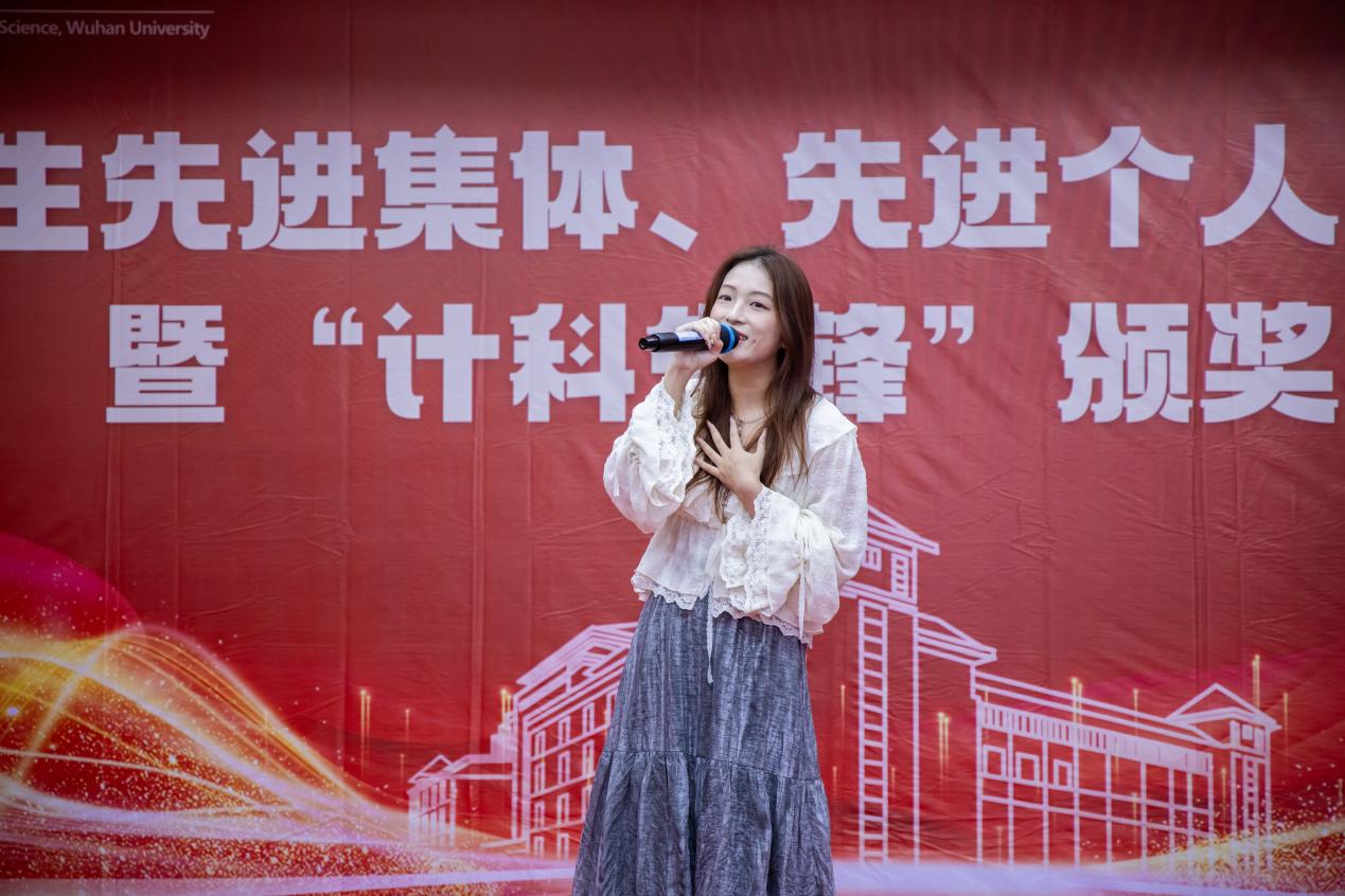 颁奖间隙,艺术与历史的回响交织共鸣。武汉大学研究生“十佳歌手”季军、2024级硕士研究生高兆颖以一曲《世界赠予我的》叩响全场听众心底的情感共鸣,以音乐语言传递生命馈赠的哲思。本科生学生代表深情朗诵《觉醒年代》,纪念中国人民抗日战争胜利80周年,用饱满的情绪带大家穿越时光的隧道,触摸那个觉醒与抗争交织的年代,字字句句凝聚着“请党放心,强国有我”的青春力量。