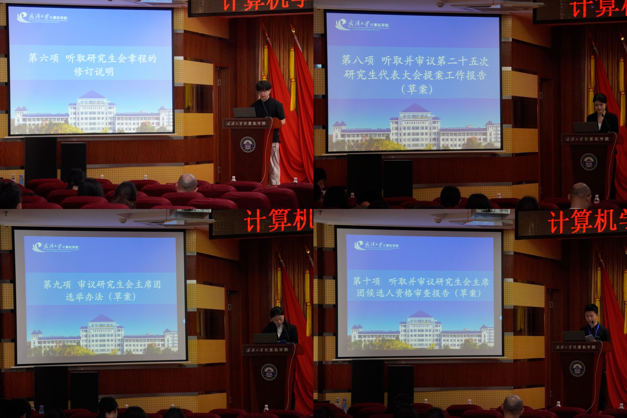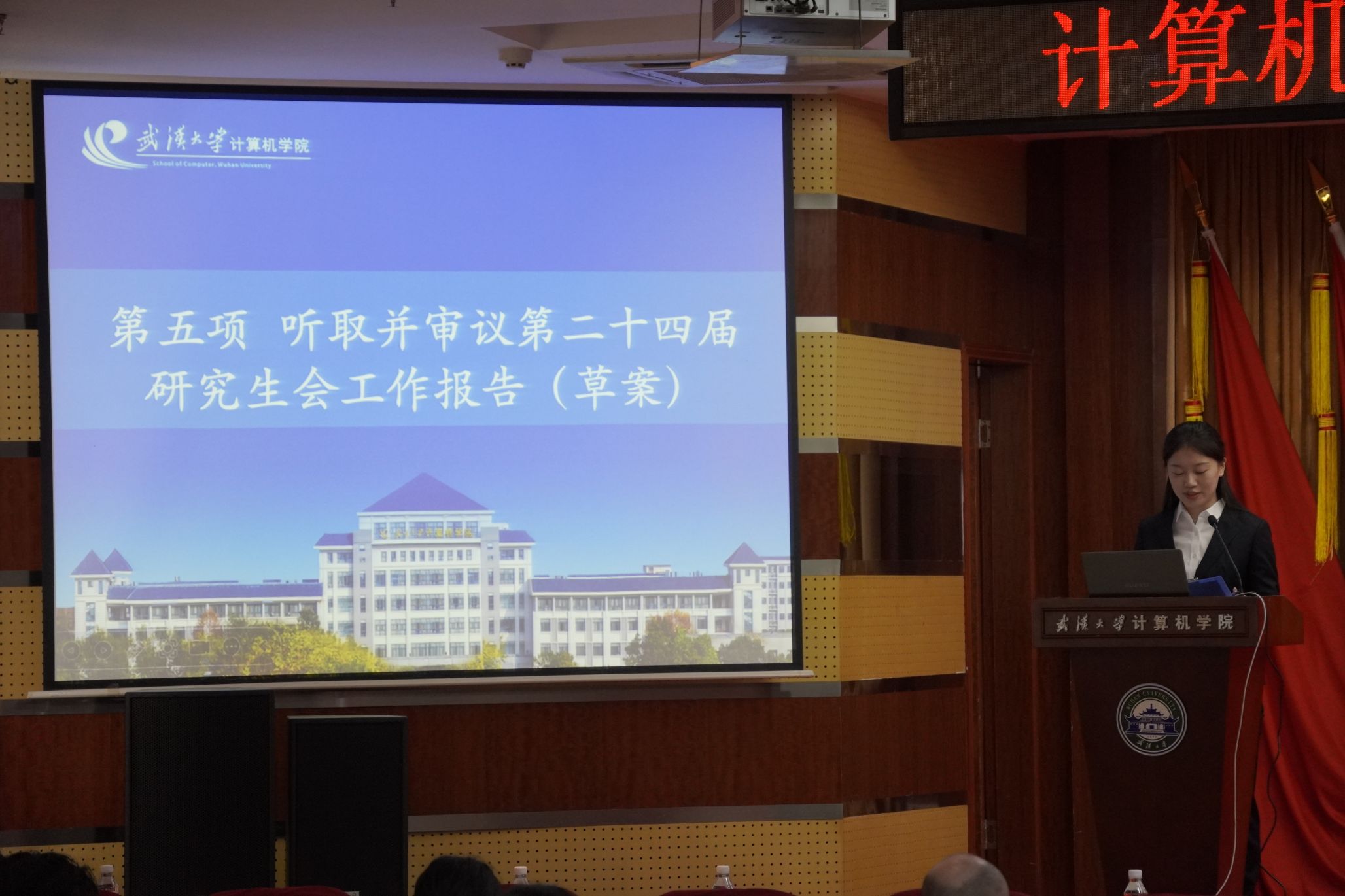 2025年6月12日下午,K体育·(sports)官方网站第二十五次研究生代表大会在计算机学院八楼报告厅顺利召开。共青团武汉大学委员会副书记伍林、计算机学院党委书记边金鸾、计算机学院党委副书记陈琛、计算机学院团委副书记史然、计算机学院研究生辅导员张元、校研究生会主席团成员付润雨,以及法学院、资源与环境科学学院、马克思主义学院、政治与公共管理学院、动力与机械学院、护理学院、城市设计学院等兄弟学院研究生会主席团成员共同参与了本次大会。会议由计算机学院研究生会第二十四届主席团成员卢思源主持。