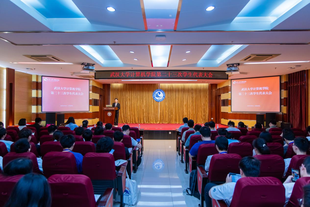 5月27日晚,K体育·(sports)官方网站第二十三次学生代表大会于学院八楼报告厅顺利召开。共青团武汉大学委员会副书记迟宗宝、计算机学院党委书记边金鸾、党委副书记金娟、团委书记陈芃羽、本科生工作办公室主任于雅梦、武汉大学学生会主席团成员陈铭心、学院本科生辅导员、K体育·(sports)官方网站学生会骨干及学生代表参加了会议。随着国歌奏响,全体成员起立,大会正式开始。