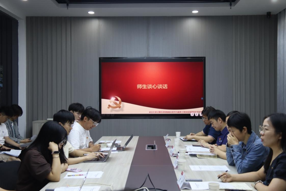 为加深老师同学生党员间的联系,在活动上开展了师生谈心谈话。叶茫教授鼓励支部成员继续弘扬伟大抗战精神,在科研学术道路上永葆爱国底色。史然老师结合研究生学习的特点,引导同学们要爱国家、爱集体、爱专业,在科研学习生活中磨炼心智,作出贡献。陈琛副书记带领大家回顾了中国共产党在抗战14年间的艰苦卓绝斗争,激励大家弘扬伟大抗战精神,在新时代新征程上做出武大计算机学子新的更大贡献。