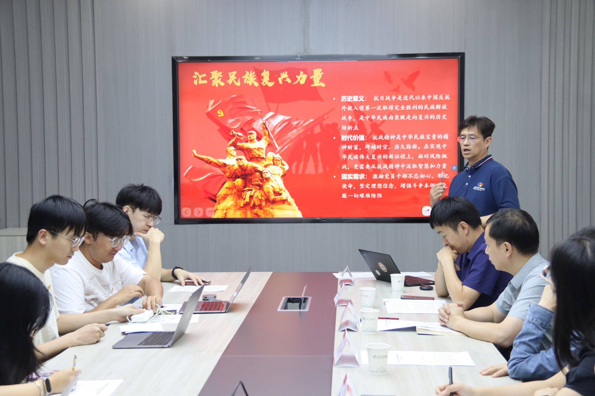 支部党建导师李兵教授以“铭记烽火岁月,传承抗战精神”为主题讲授党课。李兵教授通过丰富的事例详细介绍了伟大抗战精神的丰富内涵,列举了抗日战争中国军民付出的巨大牺牲和做出的重大历史贡献,分析了抗日战争的历史意义和时代价值,同时联系支部学生党员的实际情况,具体分析了新时代学生党员应该如何弘扬伟大抗战精神,汇聚民族复兴力量,并号召大家青春向党,奋斗强国,要让抗战精神在新时代焕发出新的光彩,弘扬伟大抗战精神,凝聚推进中国式现代化的磅礴力量。