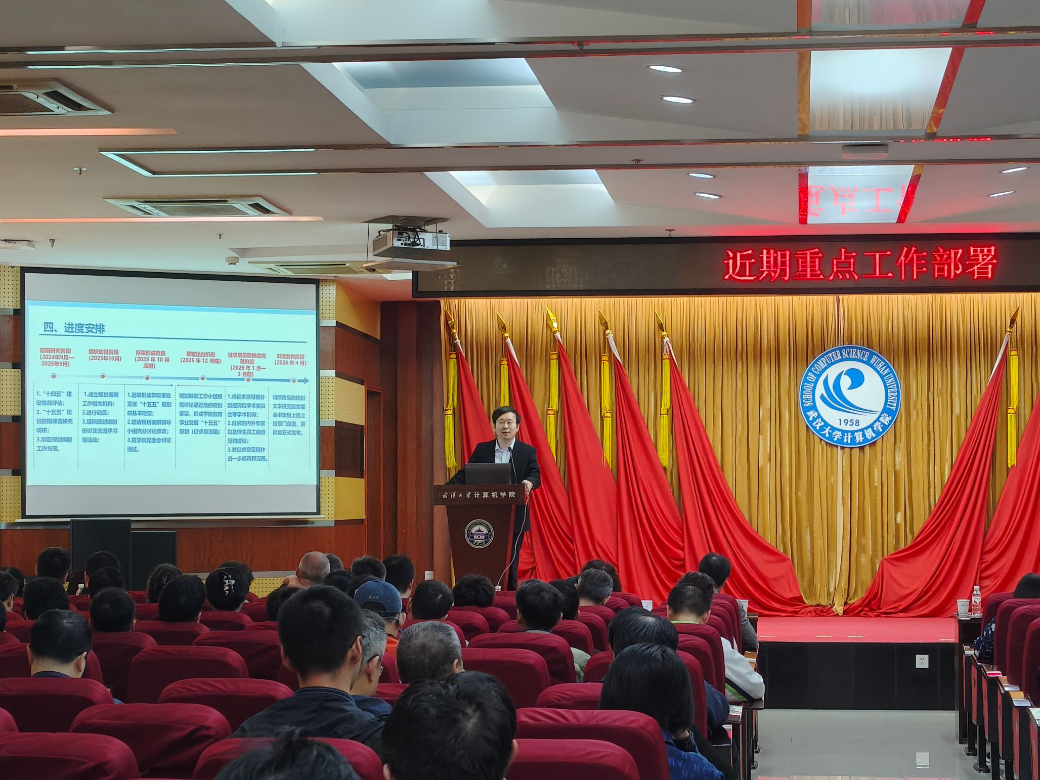 报告会之后,杜博院长布置了学院近期有关工作,重点布置了计算机学院“十五五”规划编制工作,并对2026年博士招生相关政策调整进行了说明,强调了下一阶段学院在本科教学、学科建设、人才培养等方面的重点工作任务,要求全体教职工统一思想,协同奋进,共同推动学院各项事业再上新台阶。