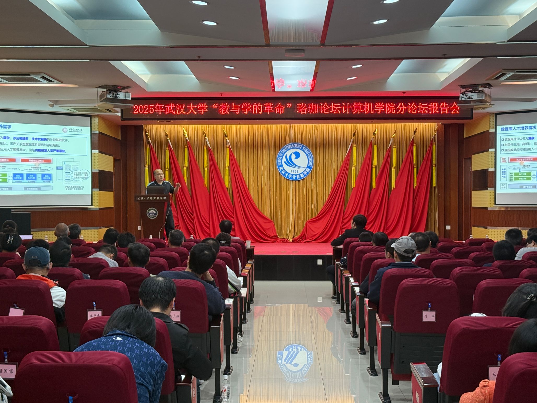 随后进行的“教与学的革命”珞珈论坛计算机学院分论坛报告会,特邀西安电子科技大学华山特聘教授李辉担任主讲嘉宾。李辉教授以 《西电“库道”——揭开黑箱之秘,让数据库与学生展开深度对话》 为题,带来了一场精彩纷呈的学术报告。他深入浅出地分享了其在数据库教学改革中的创新理念与实践经验,通过重构教学体系,将复杂的数据库原理转化为学生可感知、可对话的知识,为在座教师推动教学范式变革提供了宝贵借鉴。